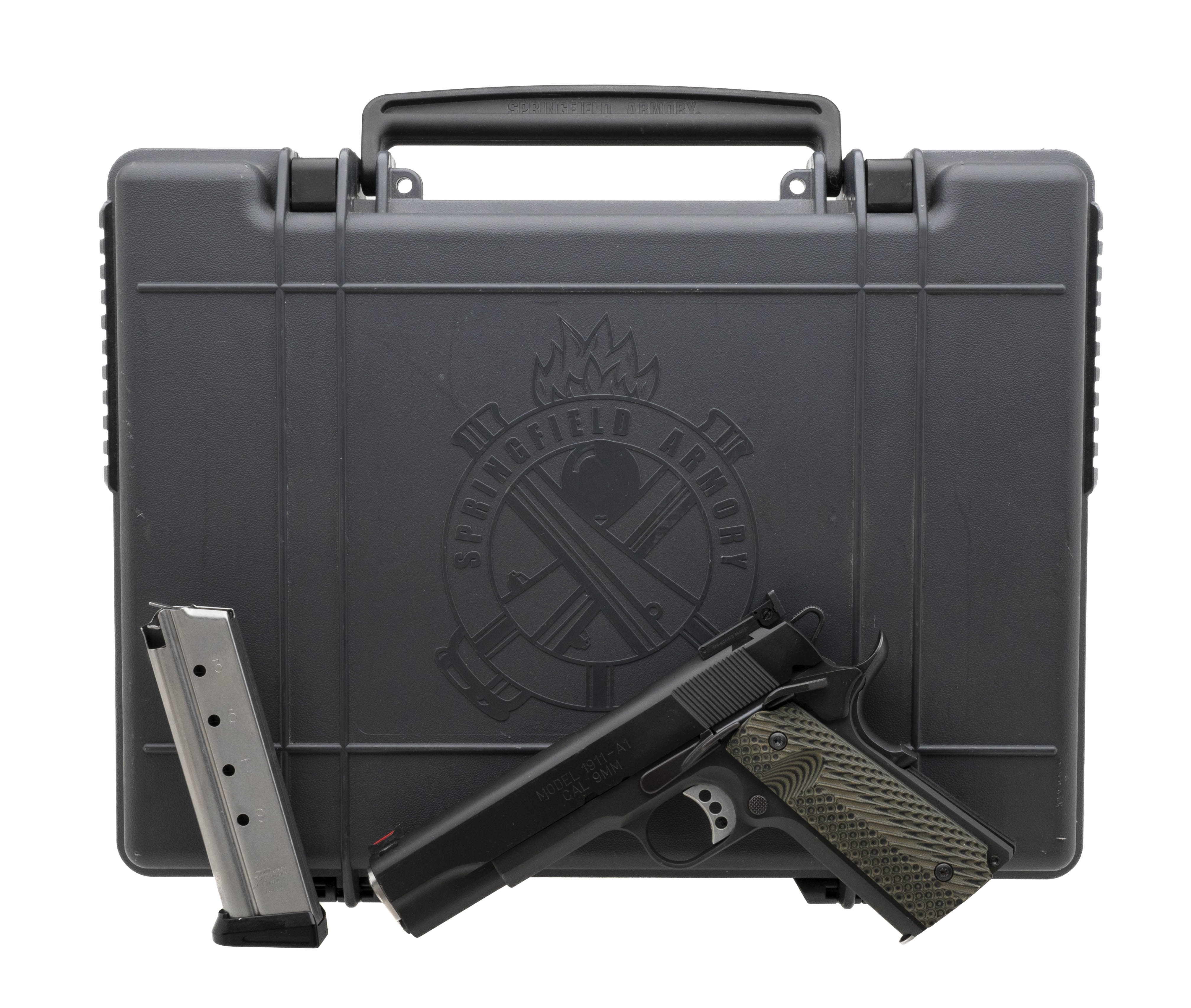 SN: NM345617. Modern production. 9mm with a 5" barrel. Bore is excellent. Springfield 1911-A1. Finish is in very good condition. G10 grips are in excellent condition. Pistol comes with case, extra magazine, holster, and magazine carrier. Overall very good condition.