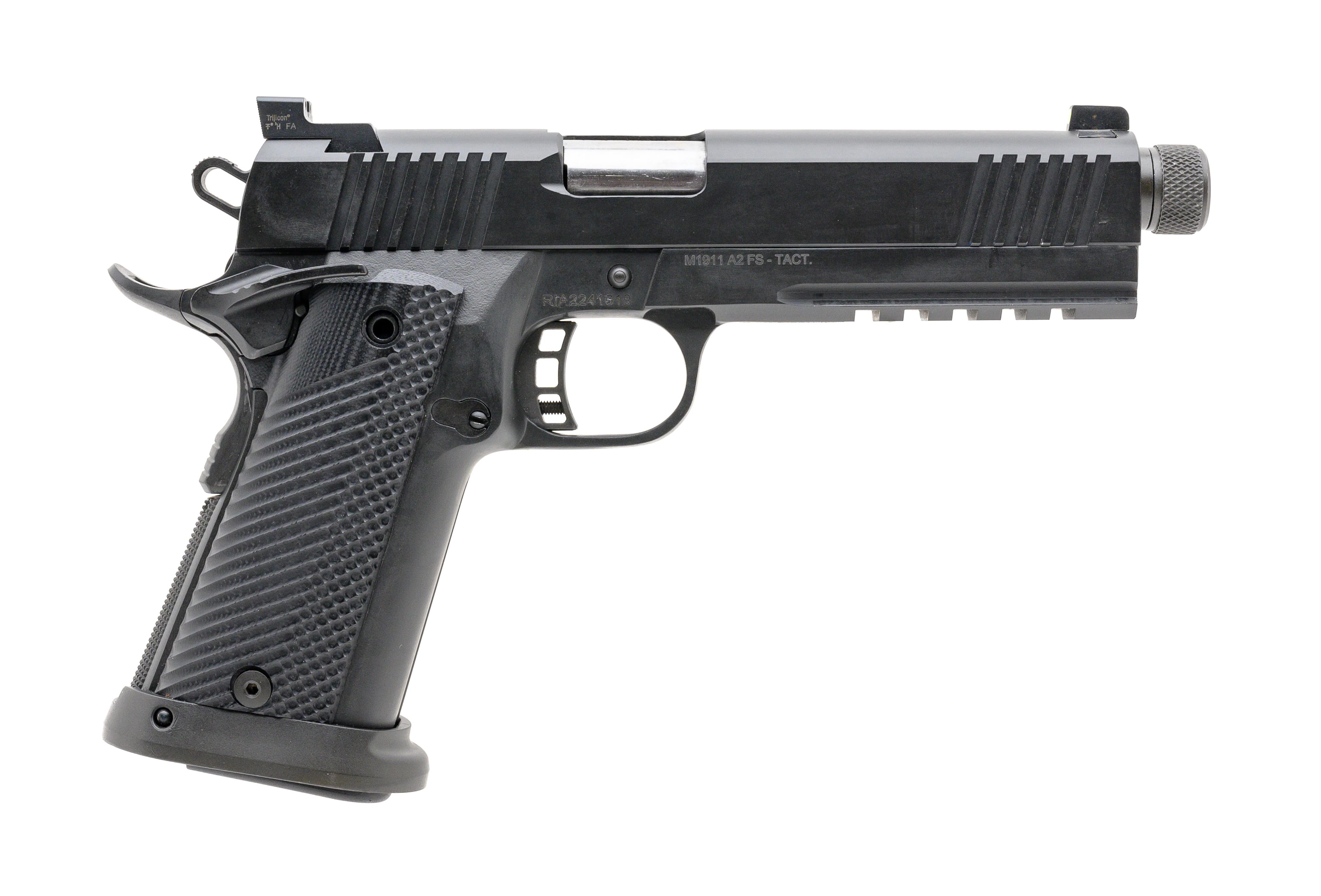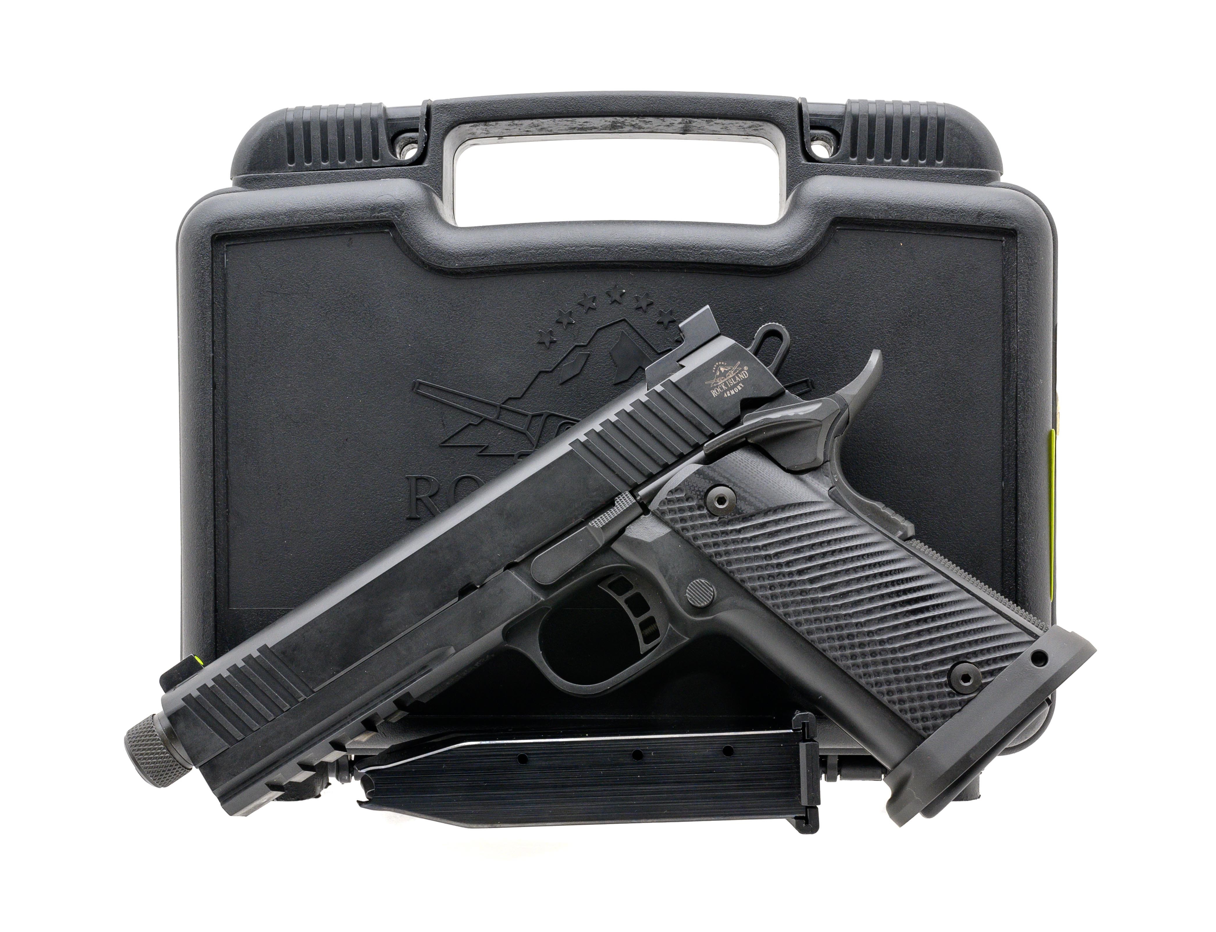 SN: RIA2241619. Modern production. 10 mm with a 5.5" threaded barrel. Bore is excellent. Double stack, steel frame 1911. Finish and grips are in excellent condition. Pistol comes with case and extra magazine. Overall excellent condition.