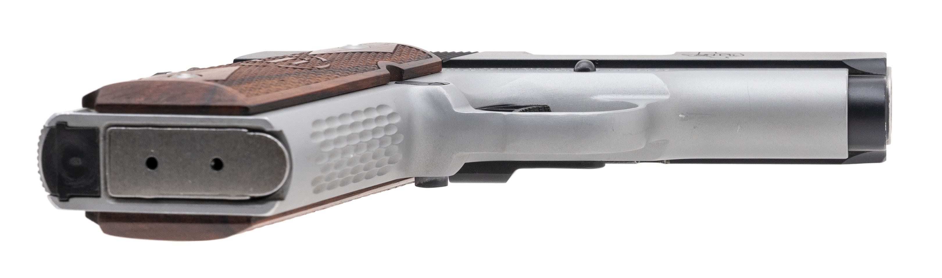 SN: KF9196. Modern production. .45 with a 3” barrel. Bore is excellent. Compact, alloy frame 1911. Two tone finish is in very good condition with light wear noted on the left side of the slide. Grips are in excellent condition. Overall very good condition.