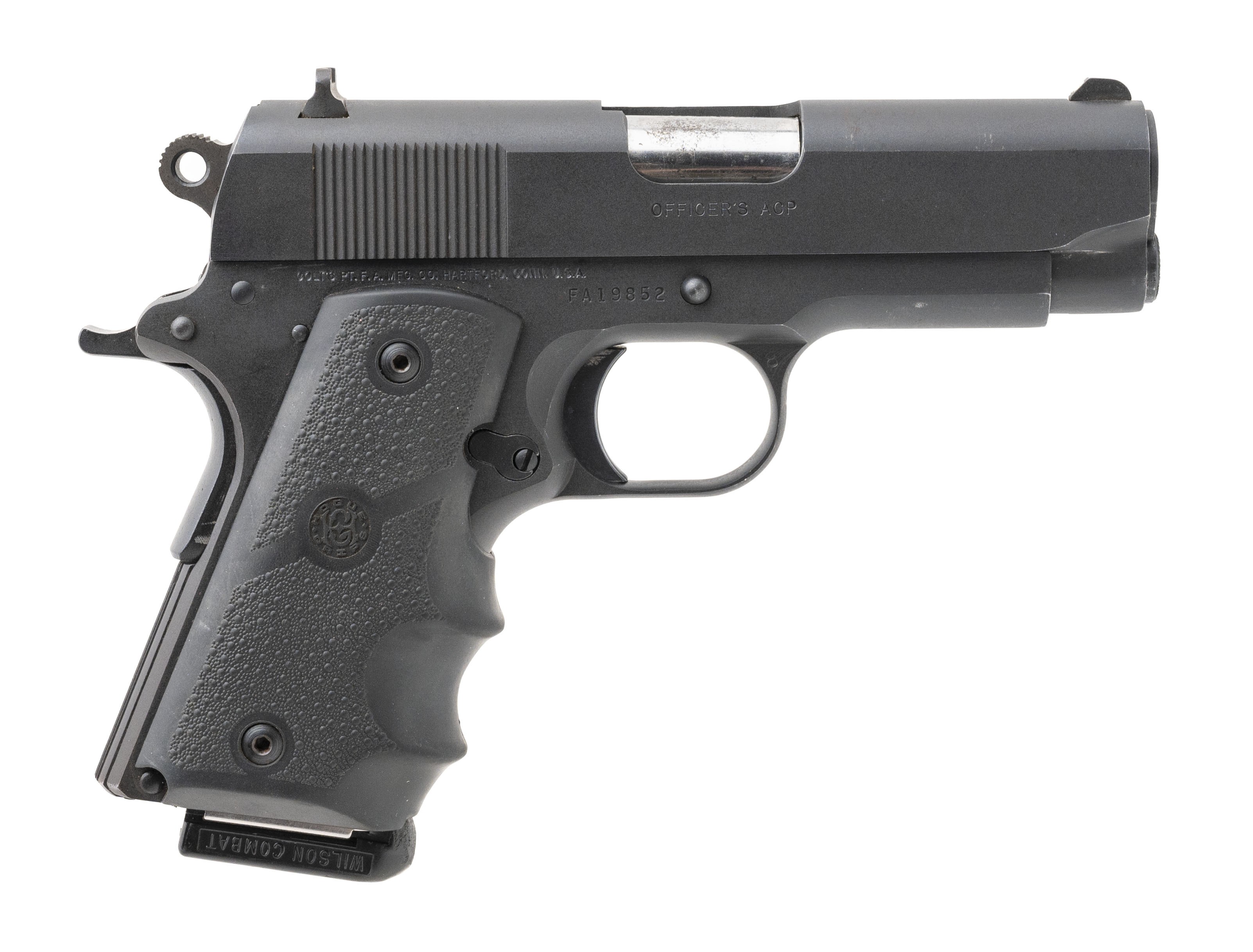 SN: FA19852. Made in 1985. .45 with a 3.5" barrel. Bore is very good with strong rifling. Steel frame Officers 1911. Finish and Hogue rubber grips are in very good condition with light handling wear noted. Overall very good condition.