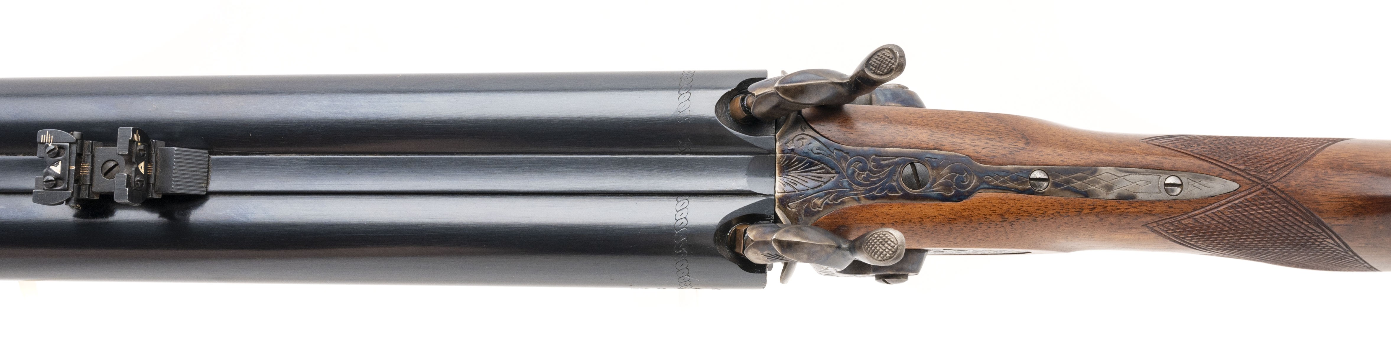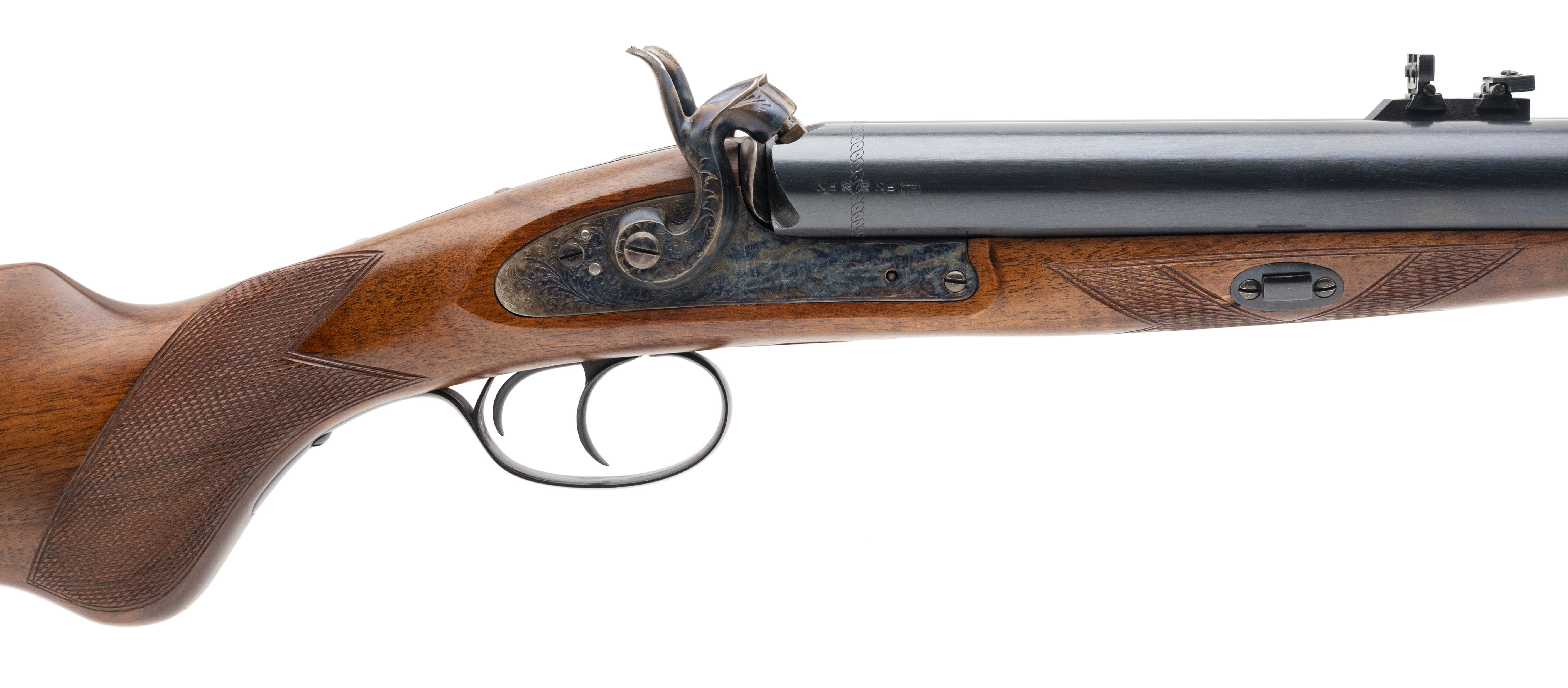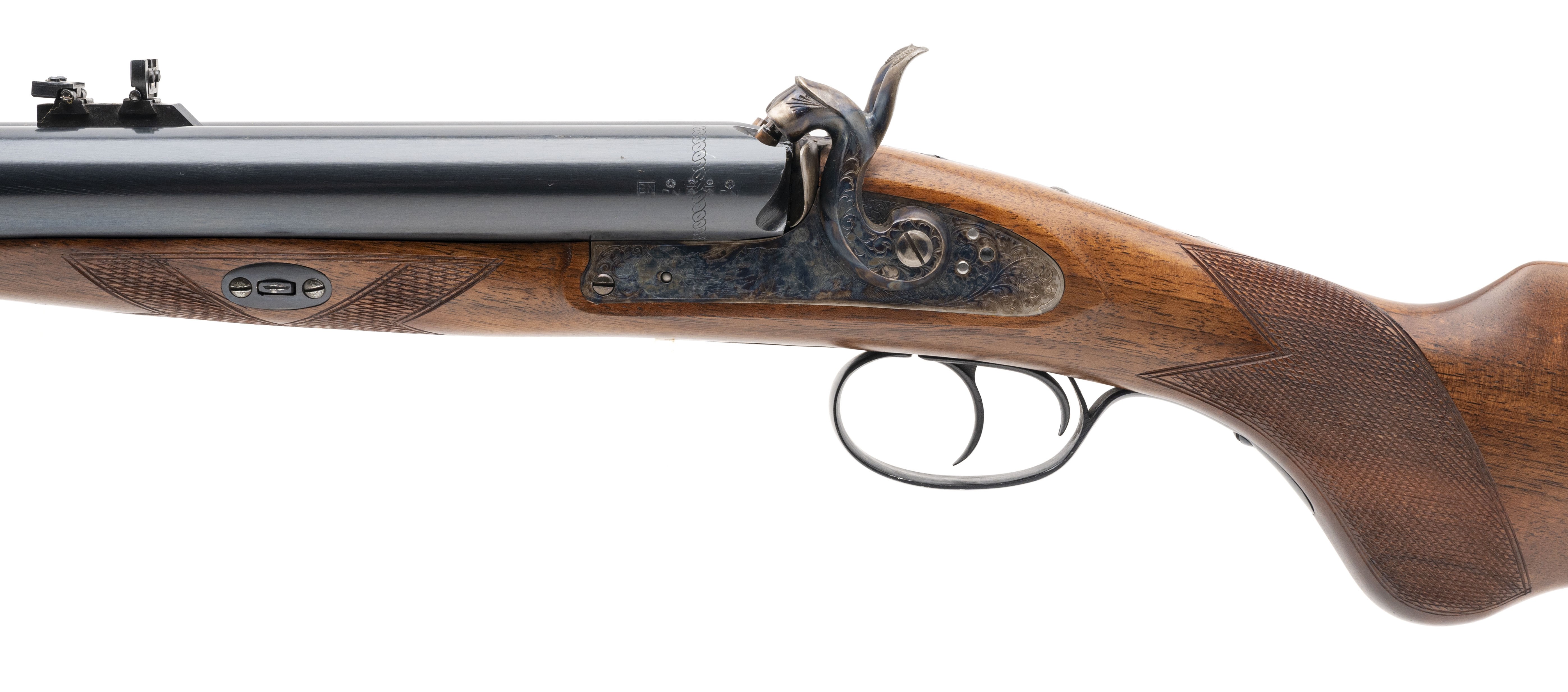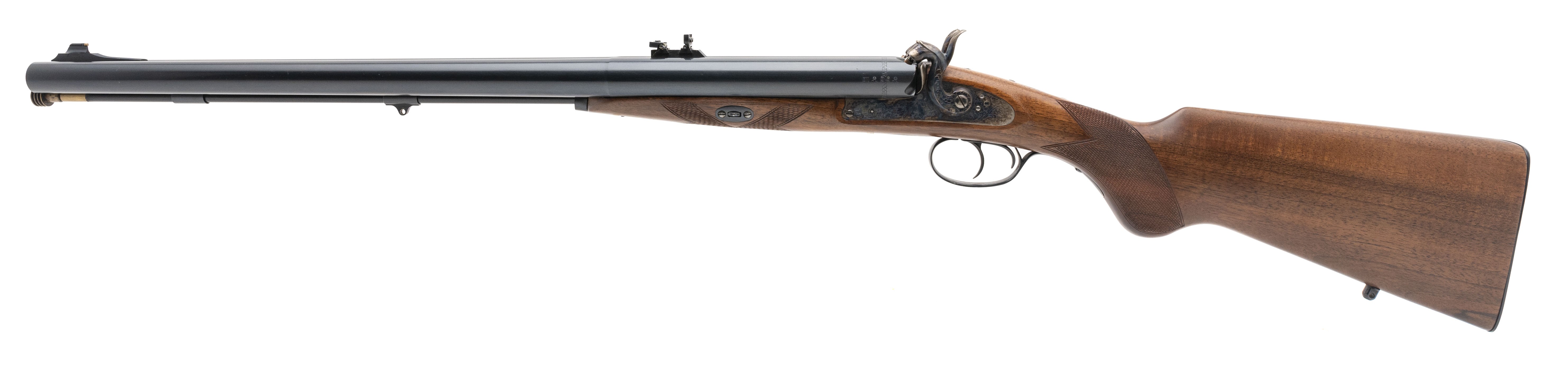 Modern production percussion double rifle in .72 cal. Has the pistol grip stock and open sights on barrels. Excellent condition.