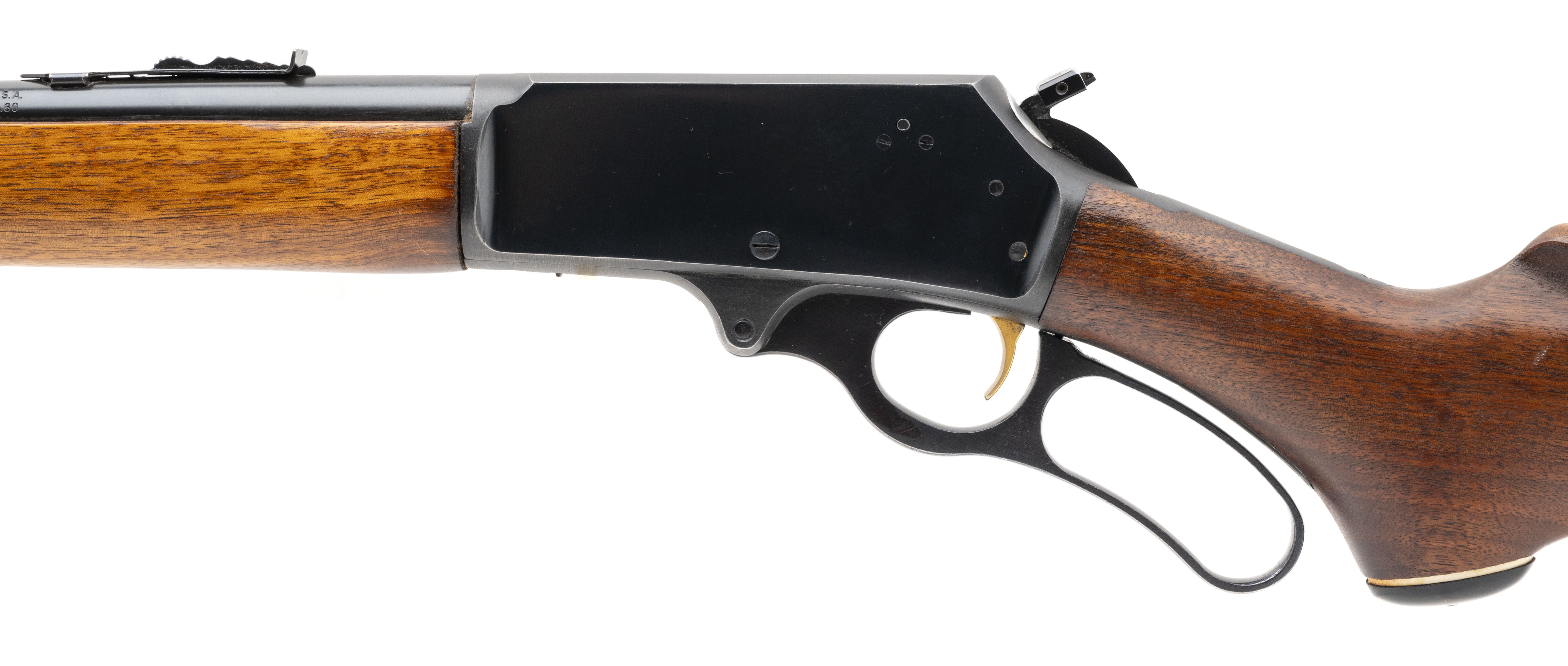 SN: AD72000. Made in 1968. 30-30 Win with a 20.25" barrel. Bore is in very good condition. Lever action rifle R.C. Model with black walnut wood stock in very good condition that has been refurbished. 90% of factory finish satin bluing retained. Comes with hammer extension, adjustable rear sight and hooded front sight. Overall condition is very good.