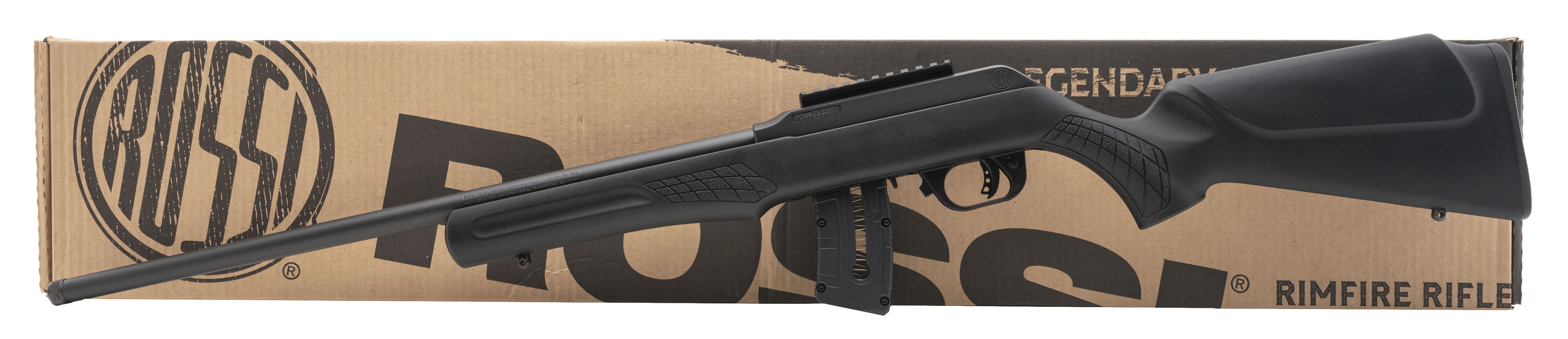 Rossi RS22M semi-automatic rifle. .22 wmr with a 21" barrel. Polymer black stock with a matte black finish. Comes with box. UPC: 754908226405(Stock Photo)