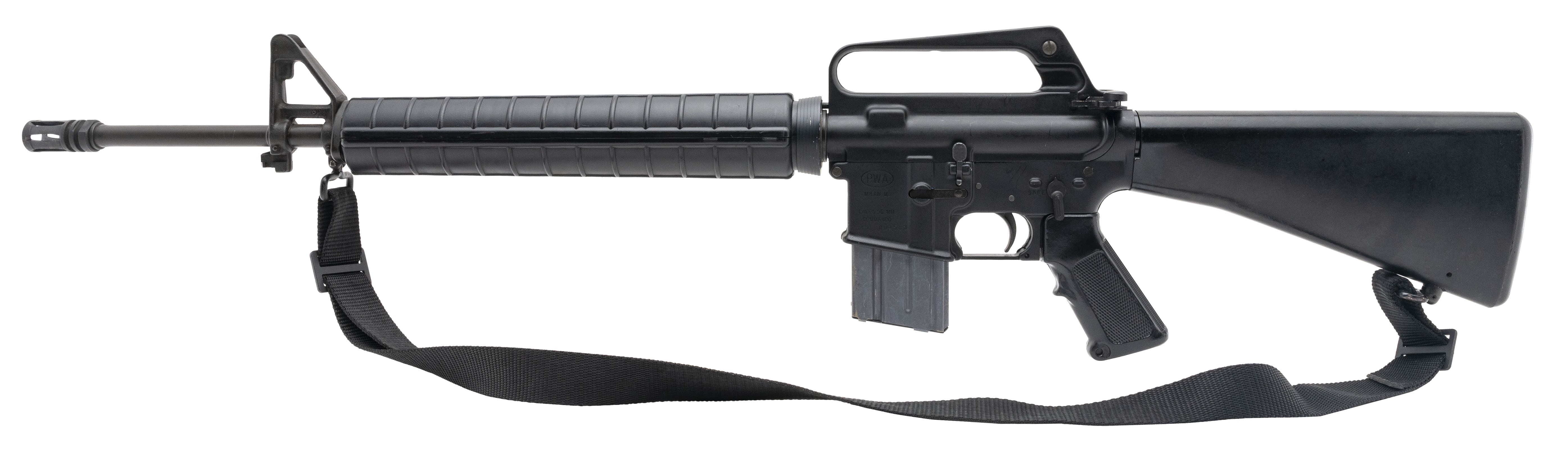 SN:0004583. Made Circa 1980's. 5.56 Nato with a 20" Chromed lined barrel. Bore is in excellent condition. Pre-ban AR rifle. Finish and fixed stock are in very good condition. Rifle has carrying handle and U.S GI upper. Overall condition is very good.