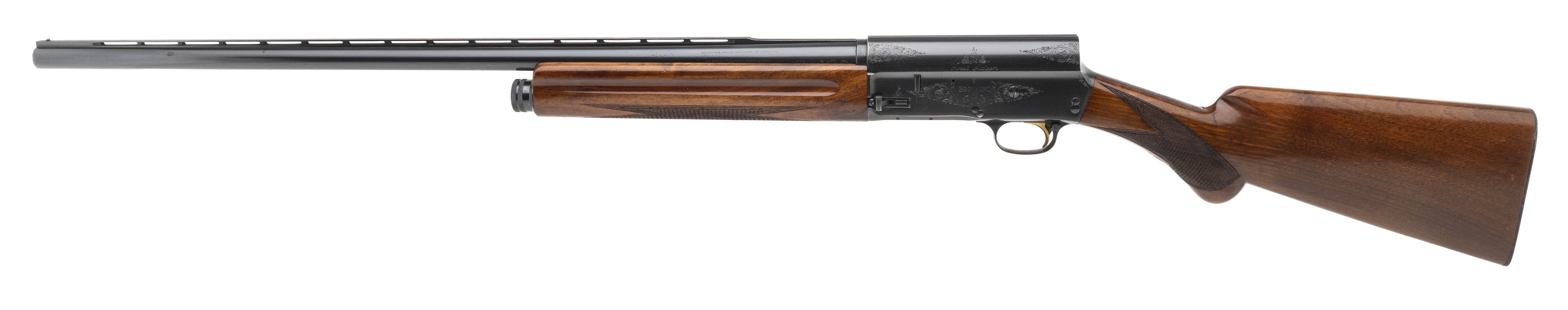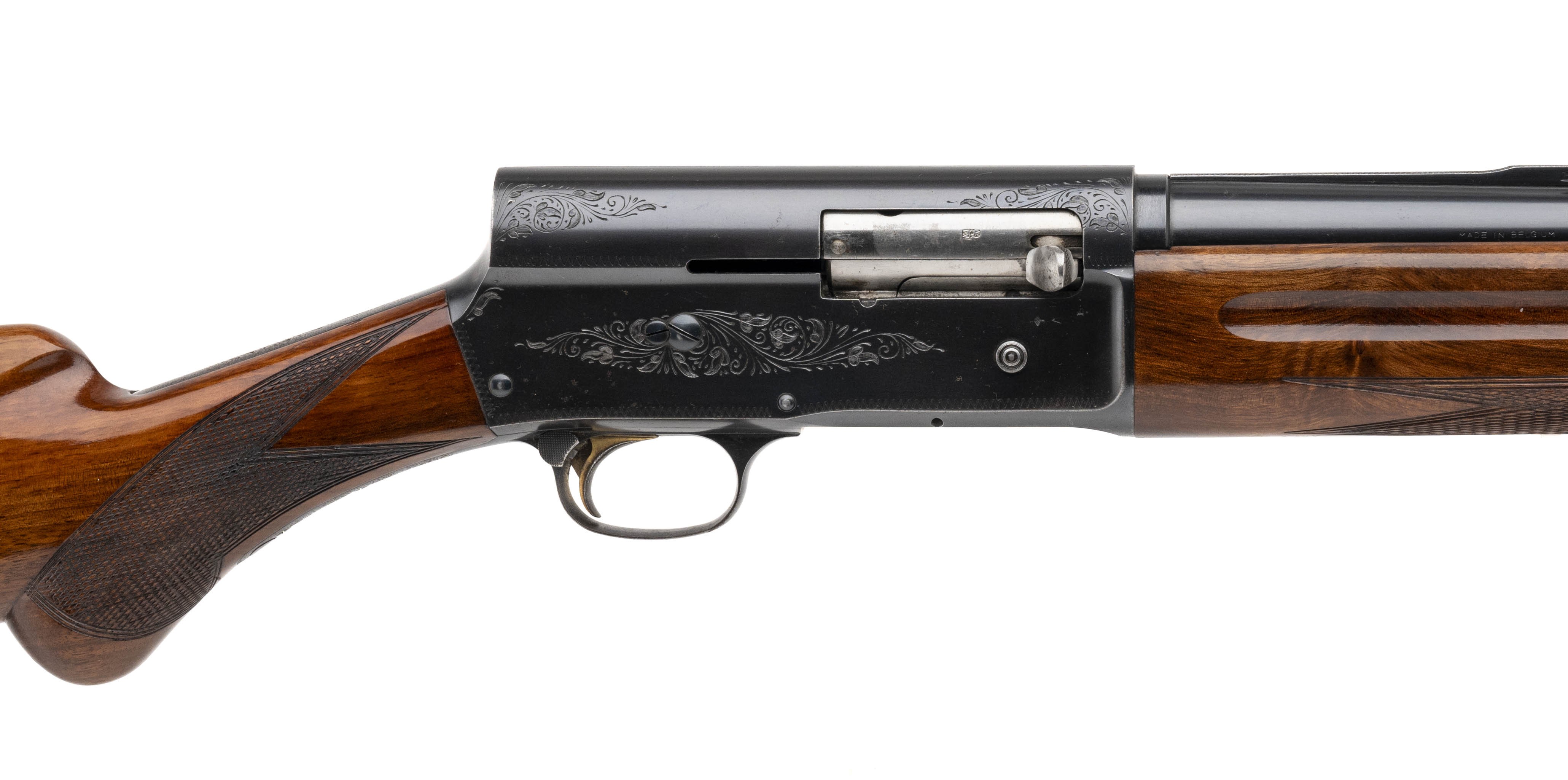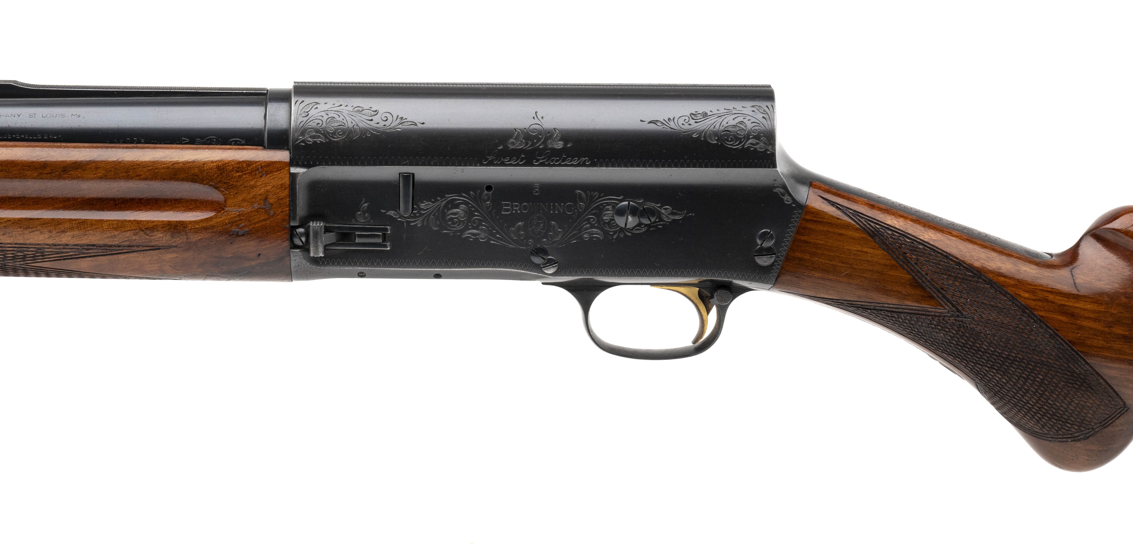 SN: S67680. Semi-automatic shotgun made by FN for Browning in 1956. 27.5" vent-ribbed mod. choke barrel chambered for 2.75" 16 gauge shells. 95+% of original blue with some surface rust on the tangs, trigger guard and in front of the loading gate. Wood is mostly excellent with patches of handling marks on the rear of the foreend and buttstock. Bore is bright. Great condition overall. Correct buttplate. Action functions correctly.
