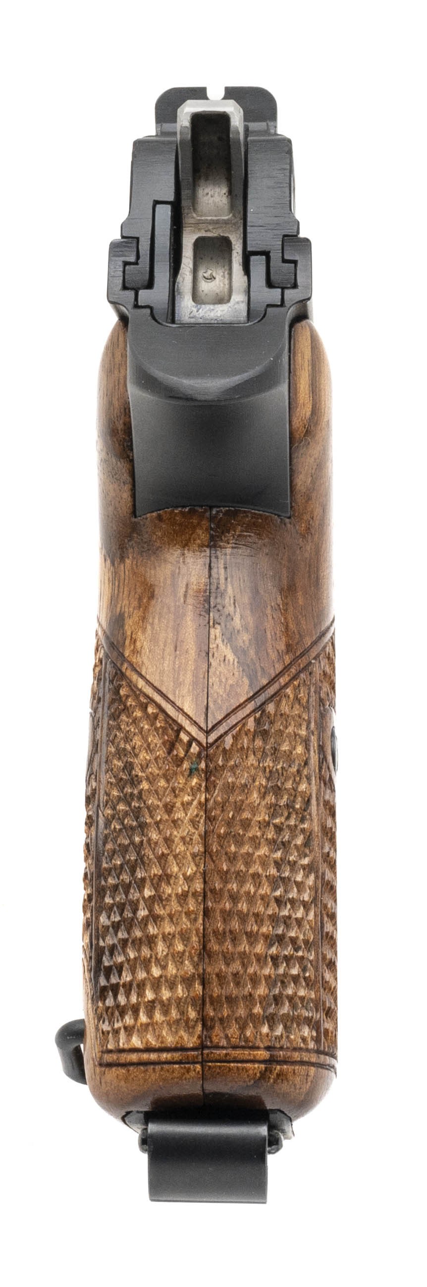 SN: 6484. 1950's vintage 9mm with a 4.7" barrel. Bore is excellent. Rare "Kuba" civilian pistol with loaded chamber indicator, left over from a German contract that never happened. Only 59 of these were sold. Has about 99% original finish. The grips are excellent. A very rare SIG pistol. (CONSIGNMENT)