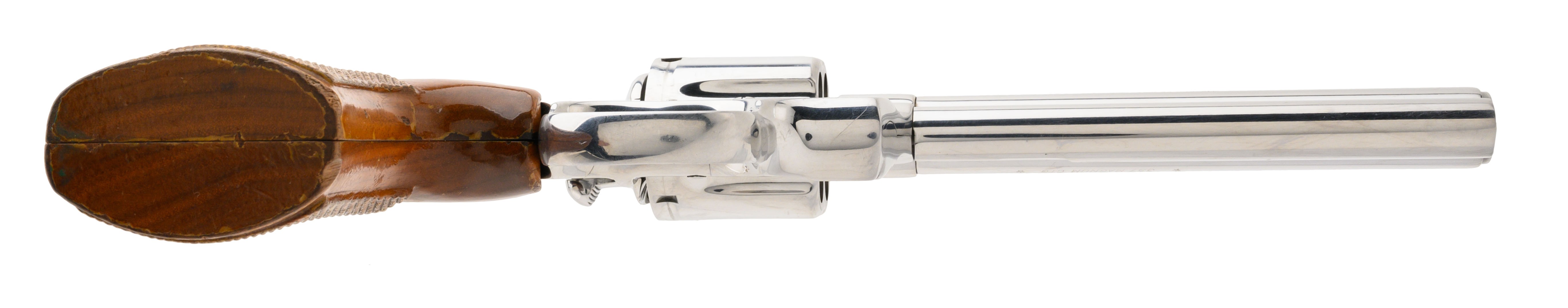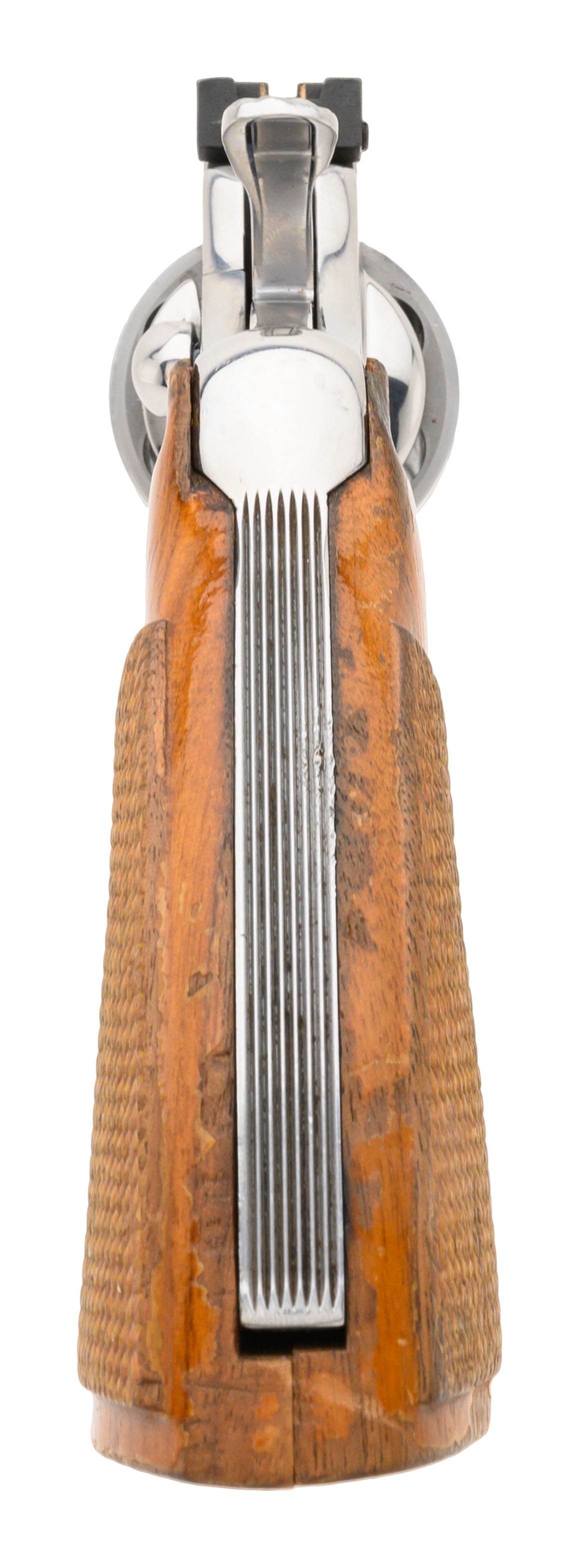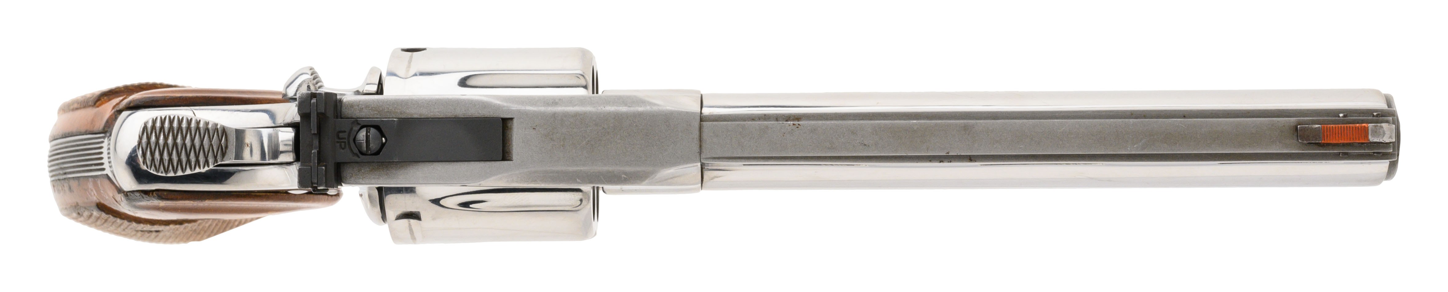 SN: T37591. Made in 1985. .357 Magnum with a 6" barrel. Bore is bright with strong rifling. Scarce and desirable high polish stainless Colt Python. Metal is in very good condition with light handling wear noted. Colt Grips have moderate checkering remaining and are in good condition. Overall very good condition.