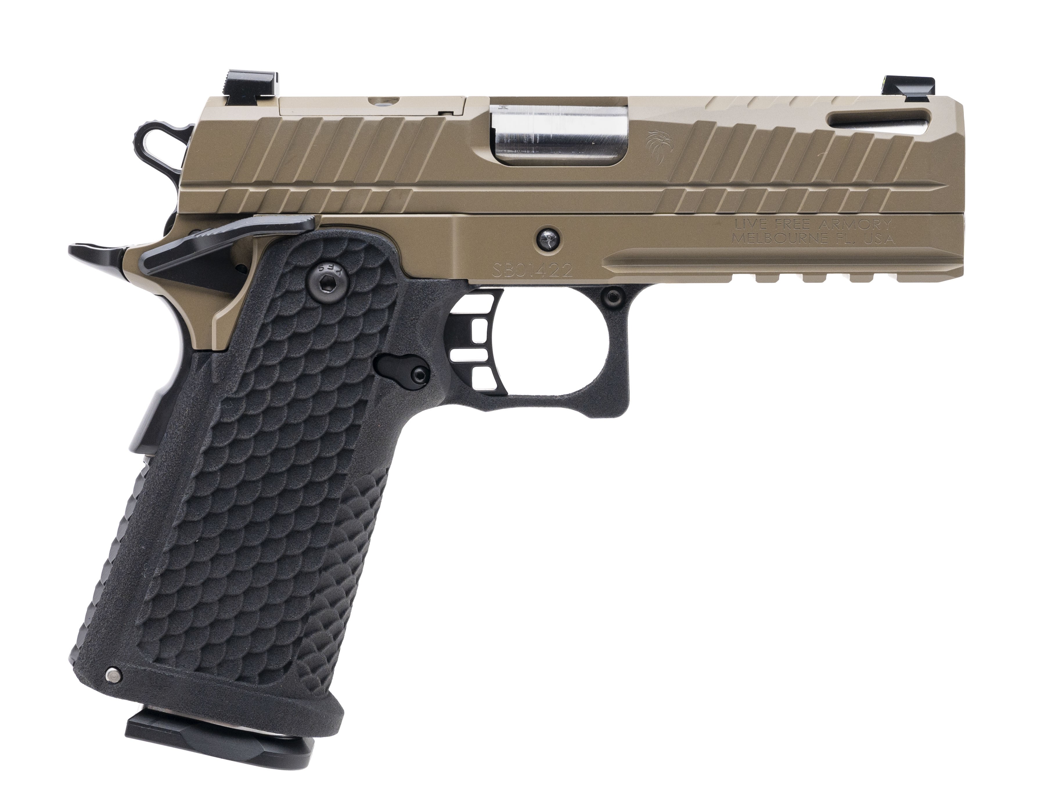 SN: SB01422. Modern production. 9mm with a 4.25" barrel. Bore is in near excellent condition. Double action Compact steel frame steel with RMSC optic cut. FDE Finish and grips are in near excellent condition. Overall condition is near excellent. Comes with box and range bag.