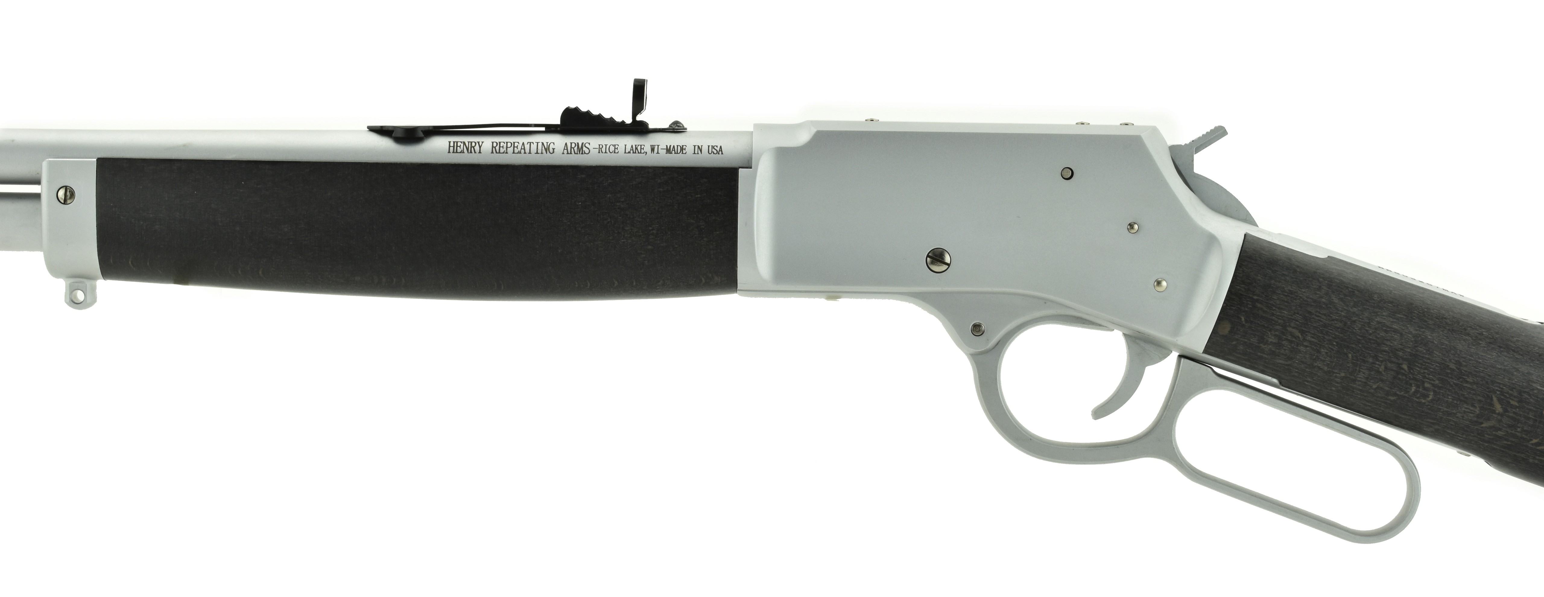 Henry H012MAW .357 Mag/38 Special Caliber Rifle. New 20” Round barrel, chrome finish, 10rd capacity, adjustable sights black wood stock.