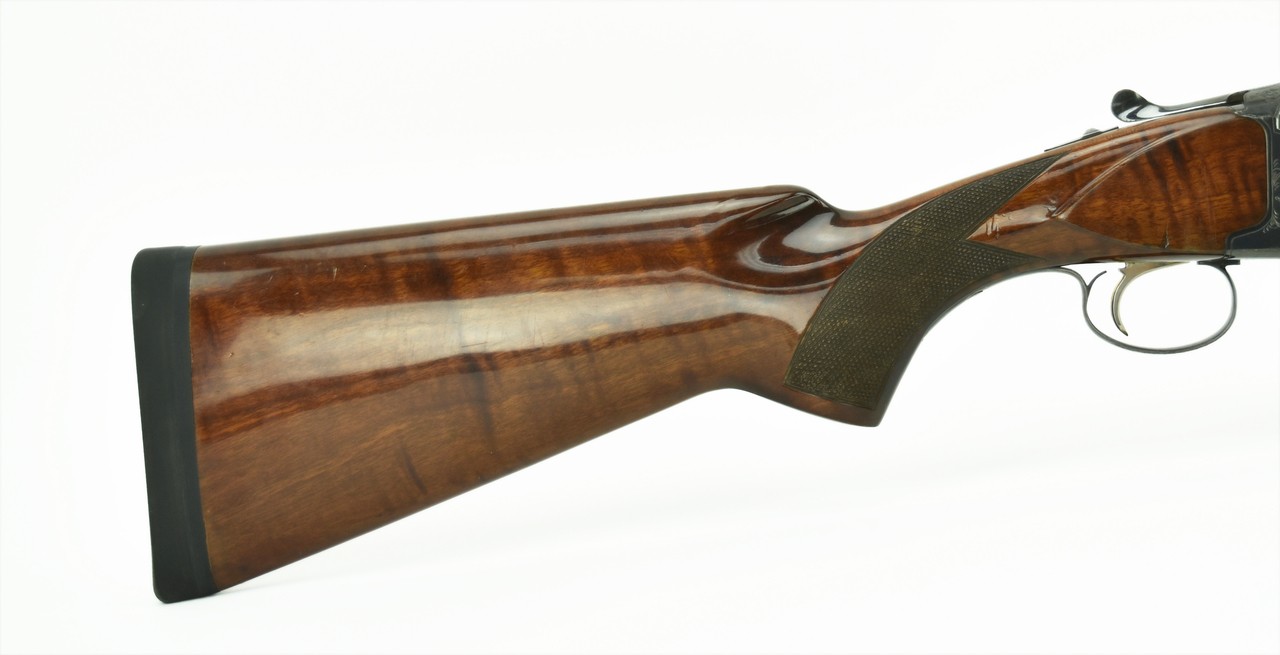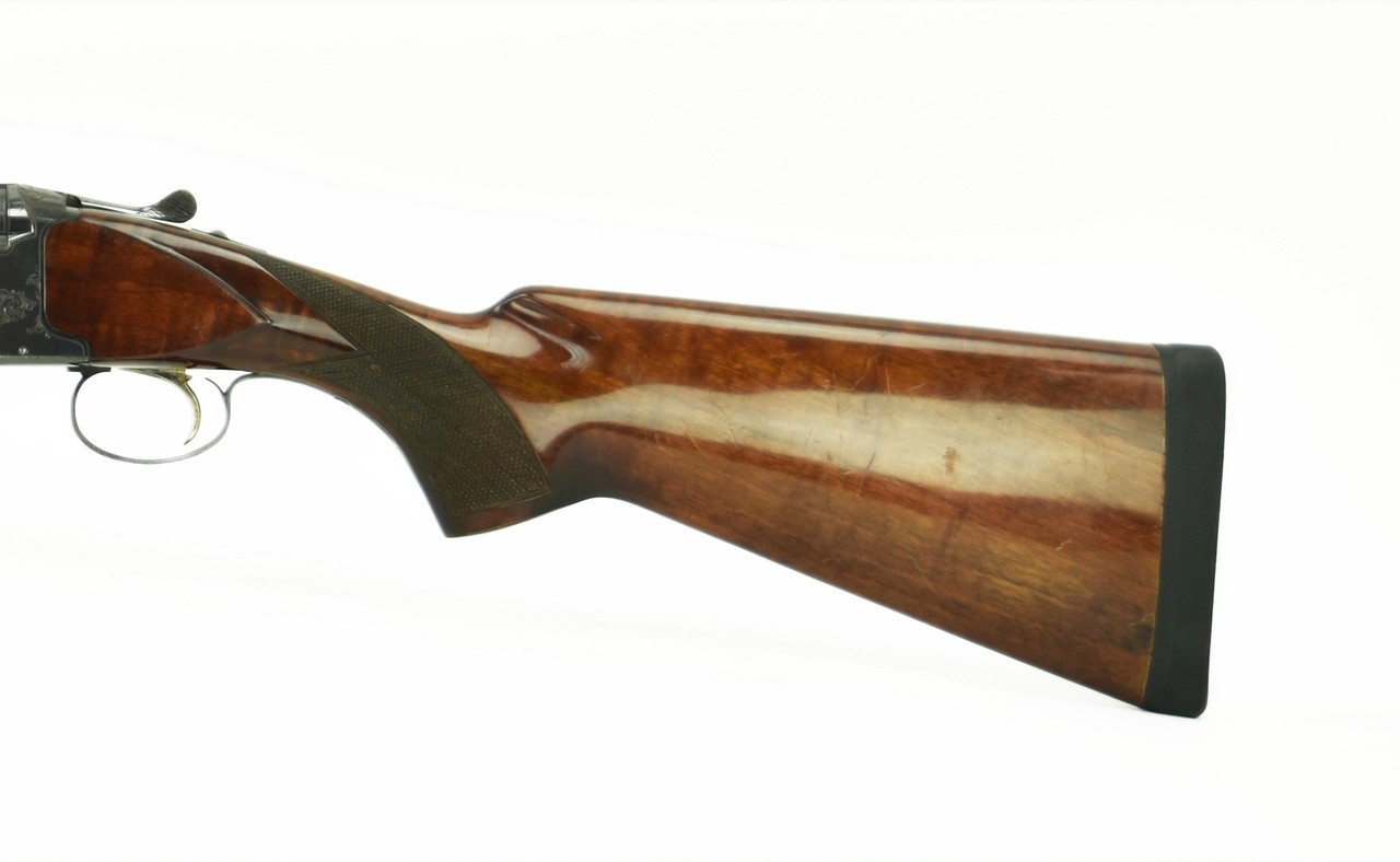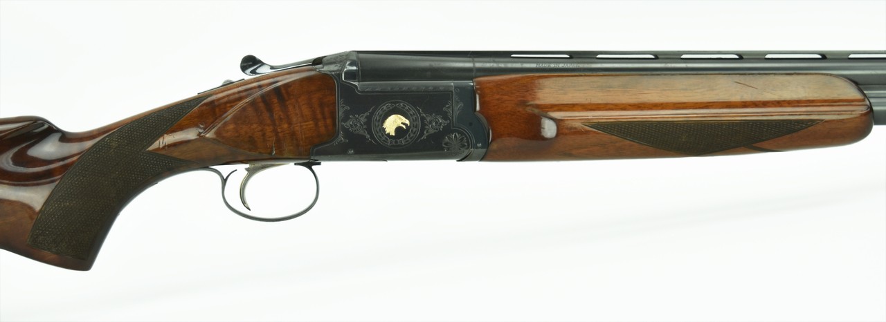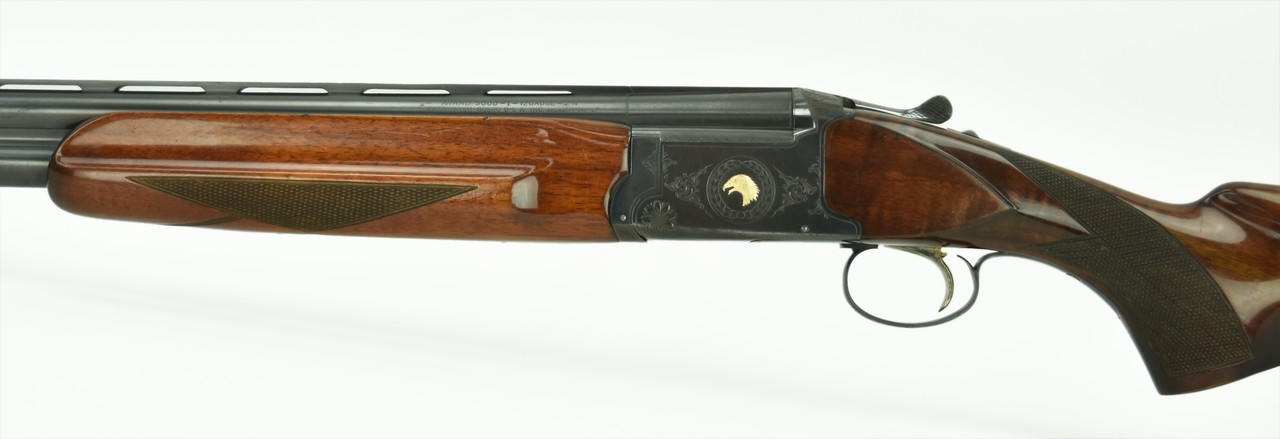Nikko 5000 I 12 Gauge caliber shotgun. “Golden Eagle” over and under field gun with 26” modified improved cylinder barrels. Very good condition with light wear.