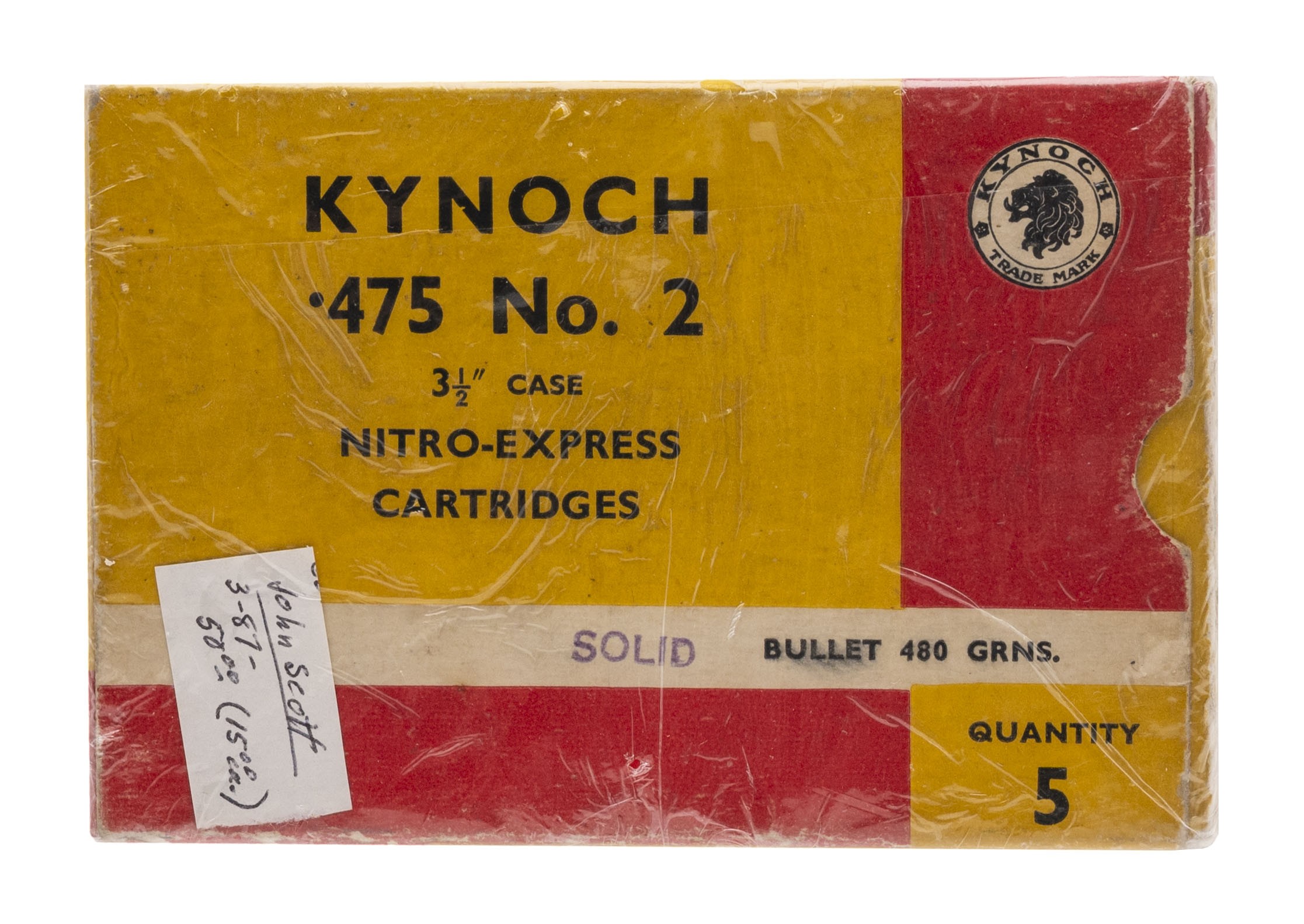 Complete box of Kynoch .475 Nitro Express. 480 Grain.