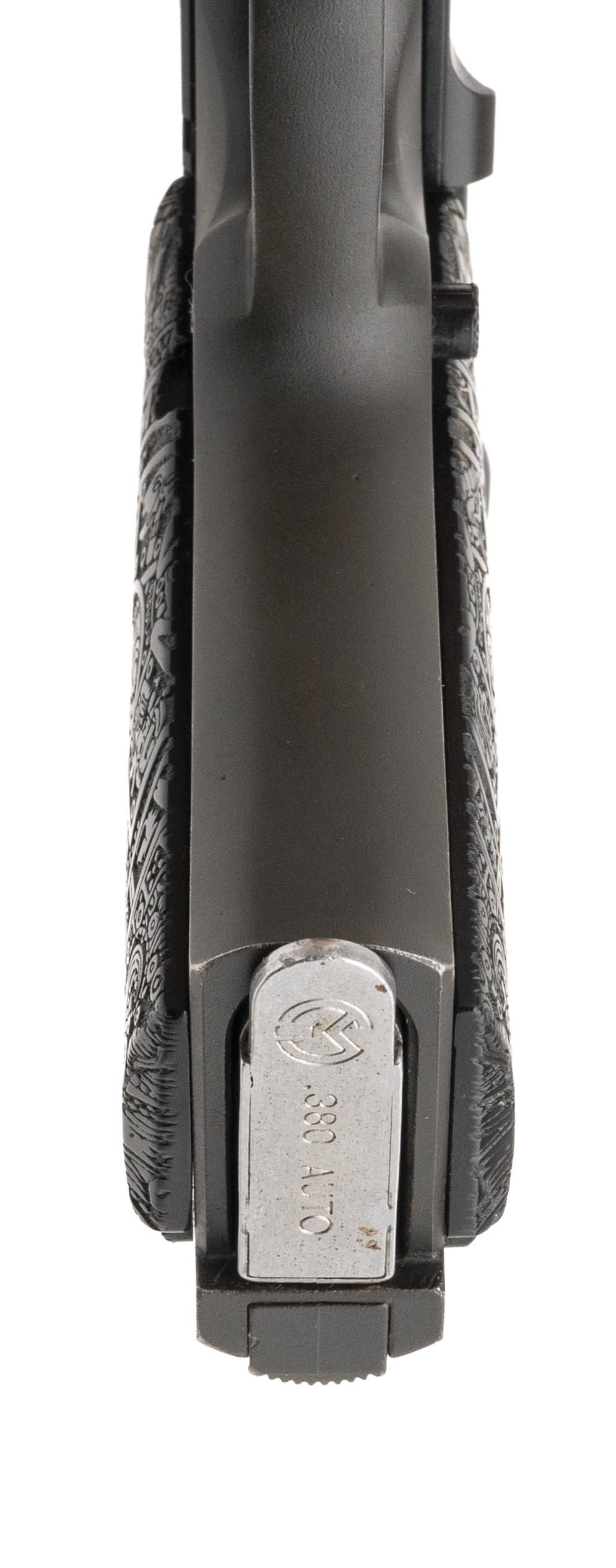 SN: RIA2611538. Modern production. Semi-automatic handgun chambered in .380 ACP with a 3.75" barrel. Bore condition is very good. Exterior condition is great. Mayan calendar grips are in excellent condition.