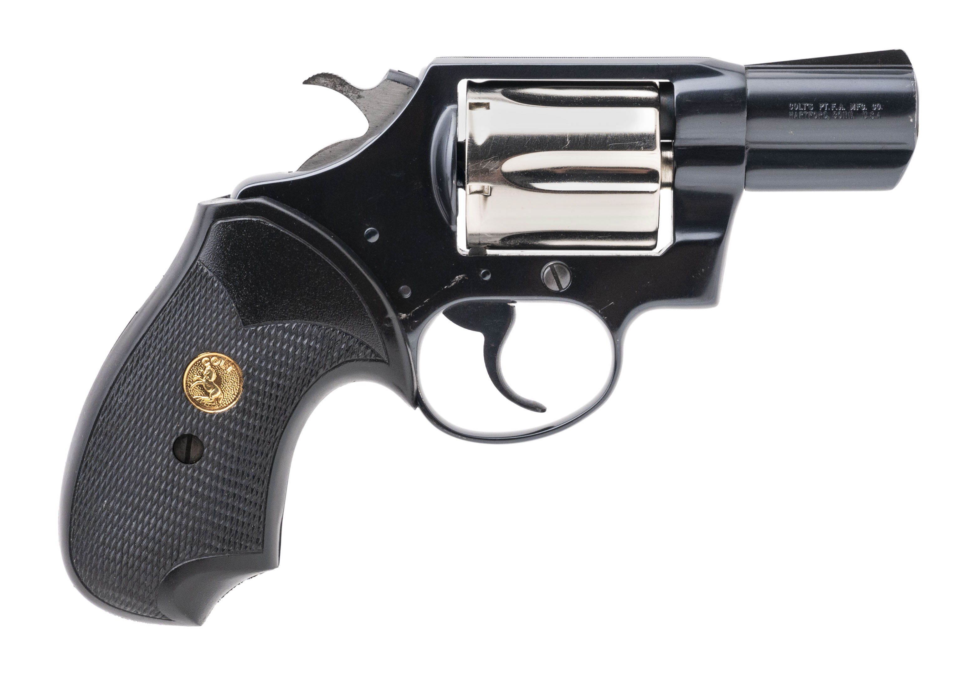 SN: P59326. Made in 1982. .38 Special with a 2" snub nose. Bore is in near excellent condition. Snub nose Colt double action "Pinto" scarce revolver with a Nickeled cylinder. Finish is in very good condition with light wear. Rubber grips are in near excellent condition with minimal wear. Overall condition is near excellent.