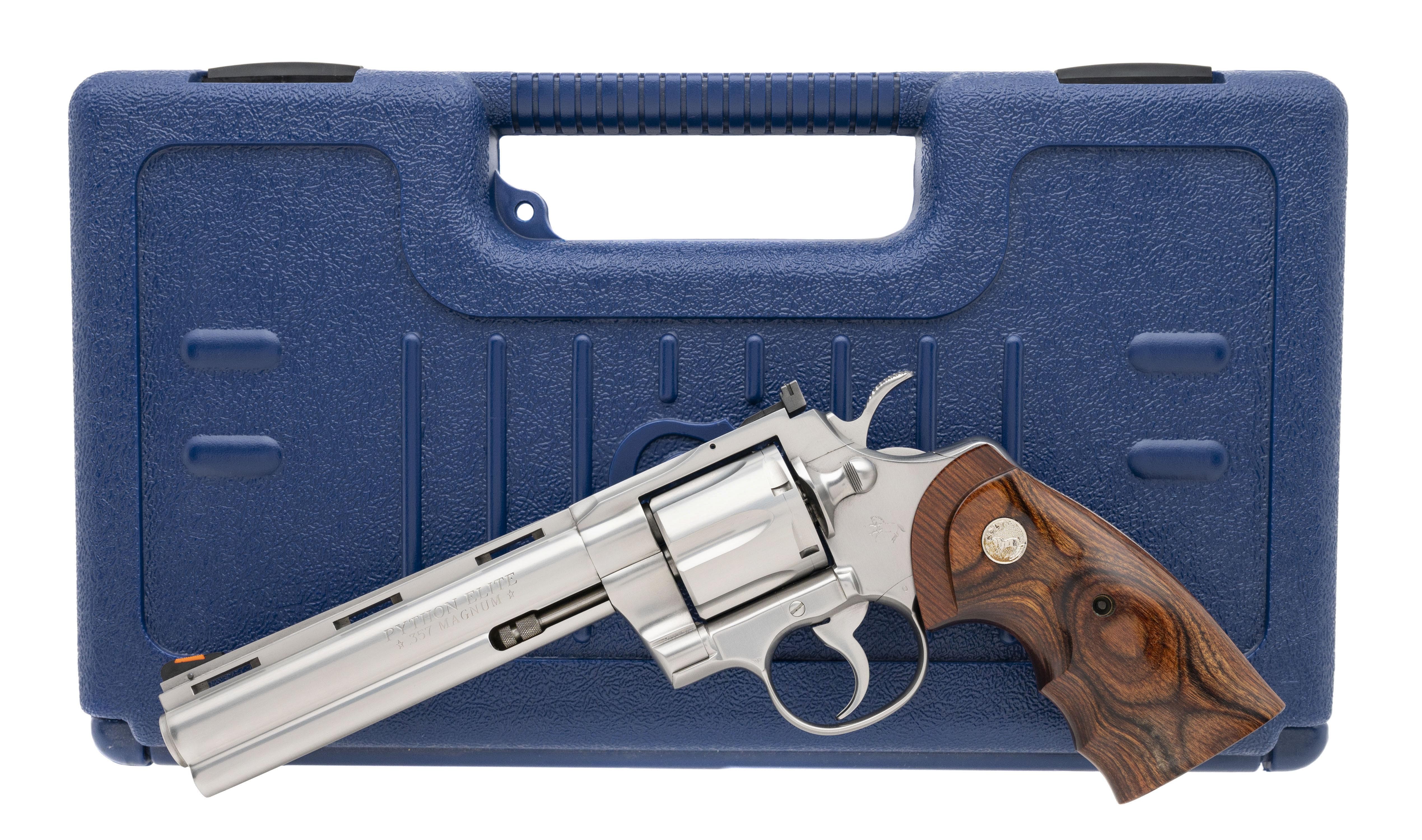 SN: PE01977. Made in 1998. .357 Magnum with a 6" barrel. Bore is bright with strong rifling. Rare limited production custom shop Python Elite. Metal is near excellent condition. Correct Custom shop grips show virtually no handling wear. Comes with case. Overall near excellent condition. (Consignment)