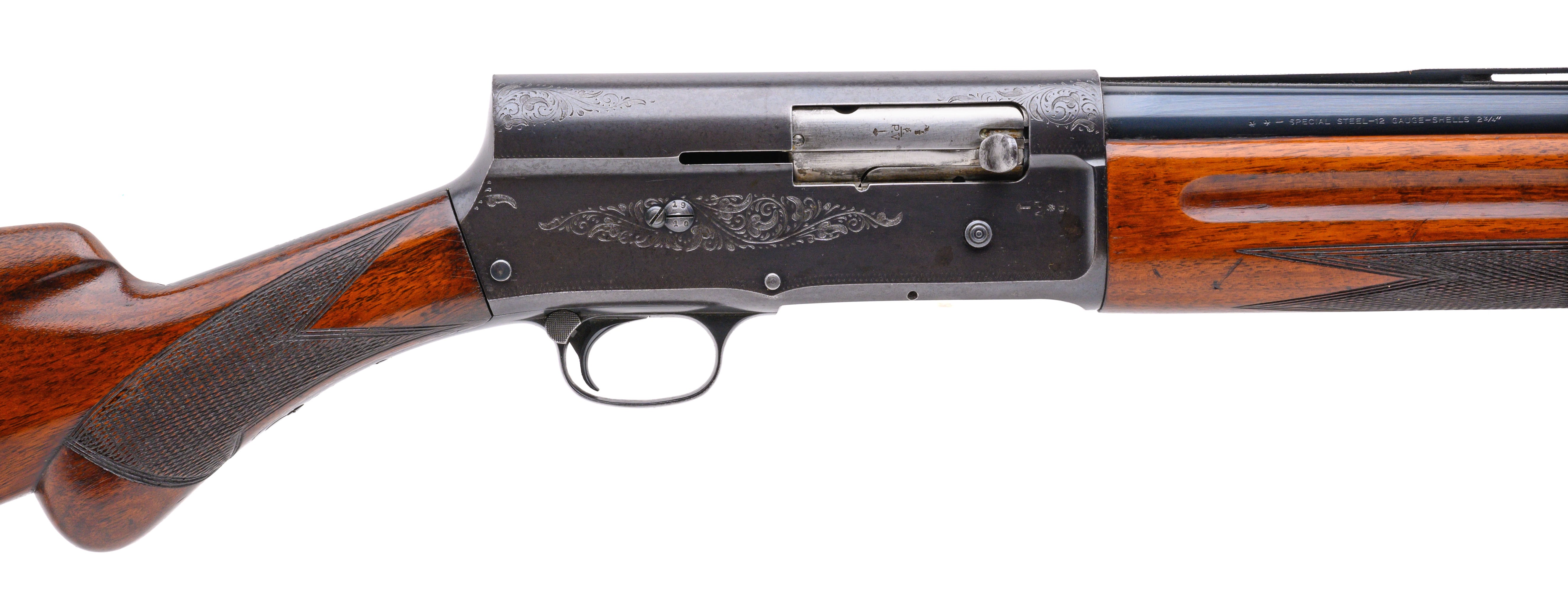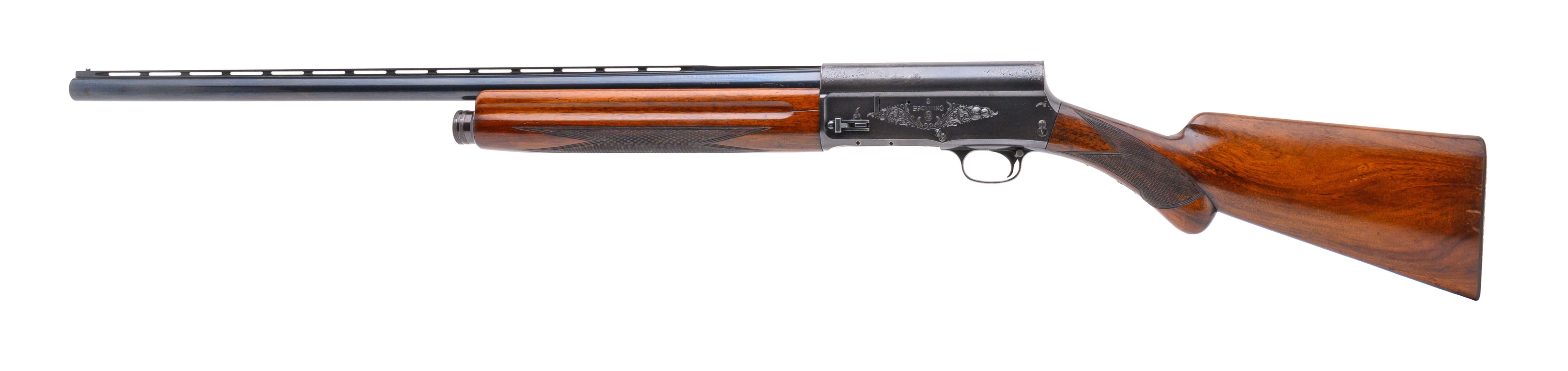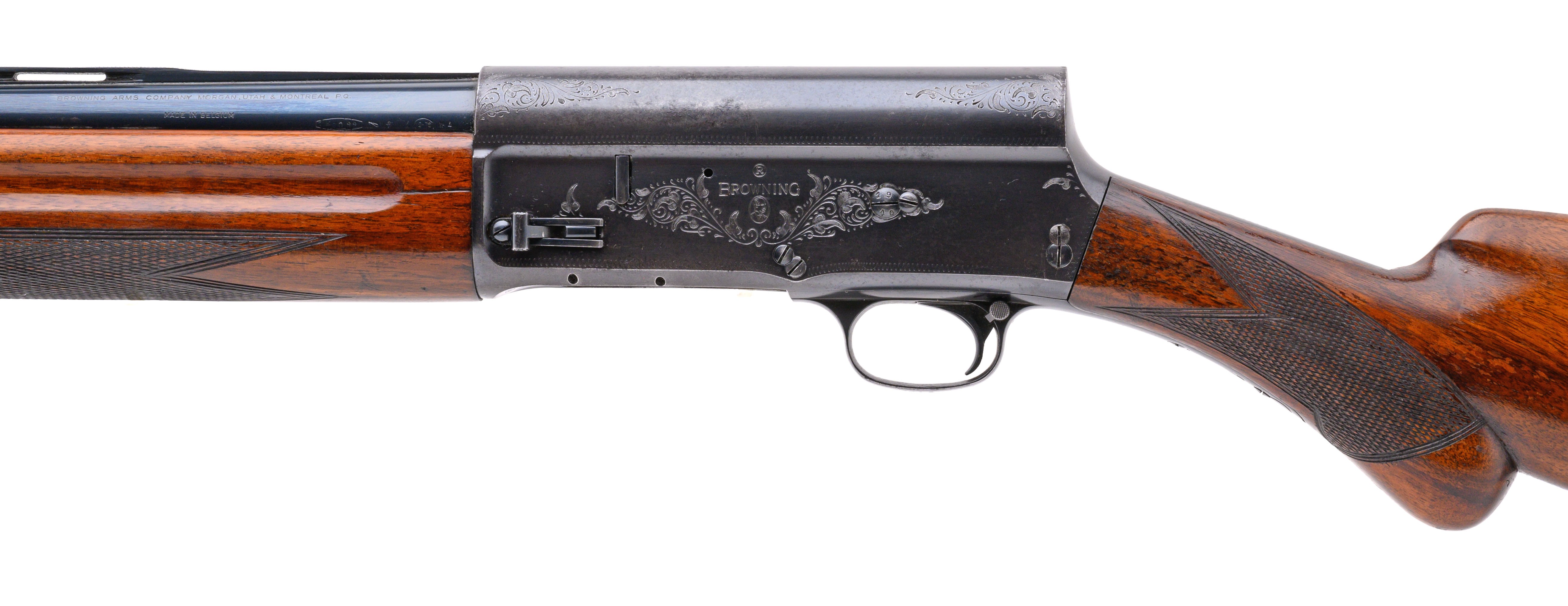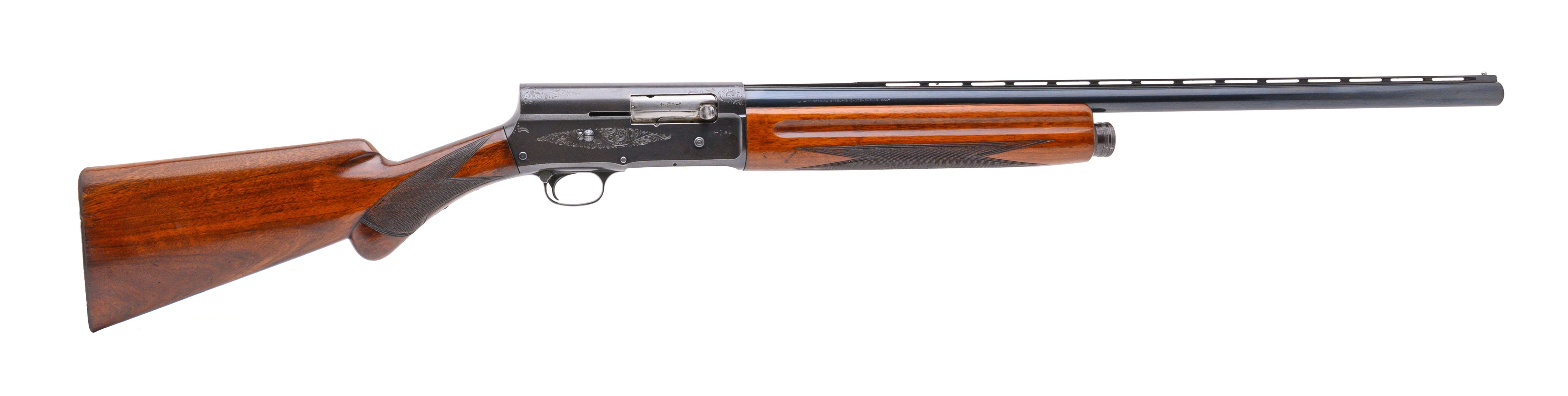 SN: 331910. Made in 1951. 12 Gauge with a 25.5" vent rib barrel choked to Improved Cylinder. Bore is in very good condition. Belgium made Browning semi-automatic field shotgun with engraved receiver. Finish is in very good condition with patina wear on receiver. Barrel had been refinish. Checkered wood stock is in very good condition with normal field wear. Overall condition is very good.