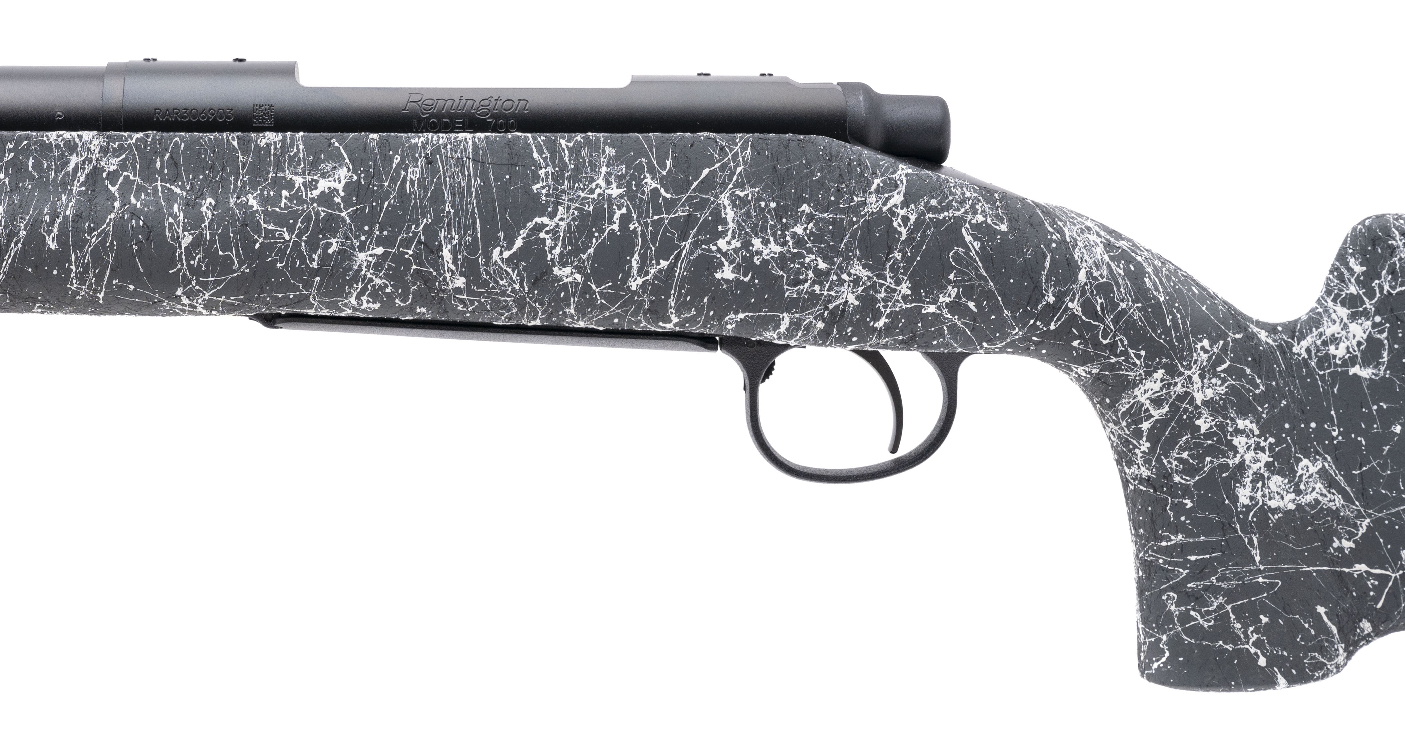 Remington 700 Long Range Rifle. 6.5 PRC with a 26" threaded heavy barrel. Remington bolt action hunting rifle with a jeweled bolt, synthetic speckled stock, matte black finish. New. UPC: 810070680534