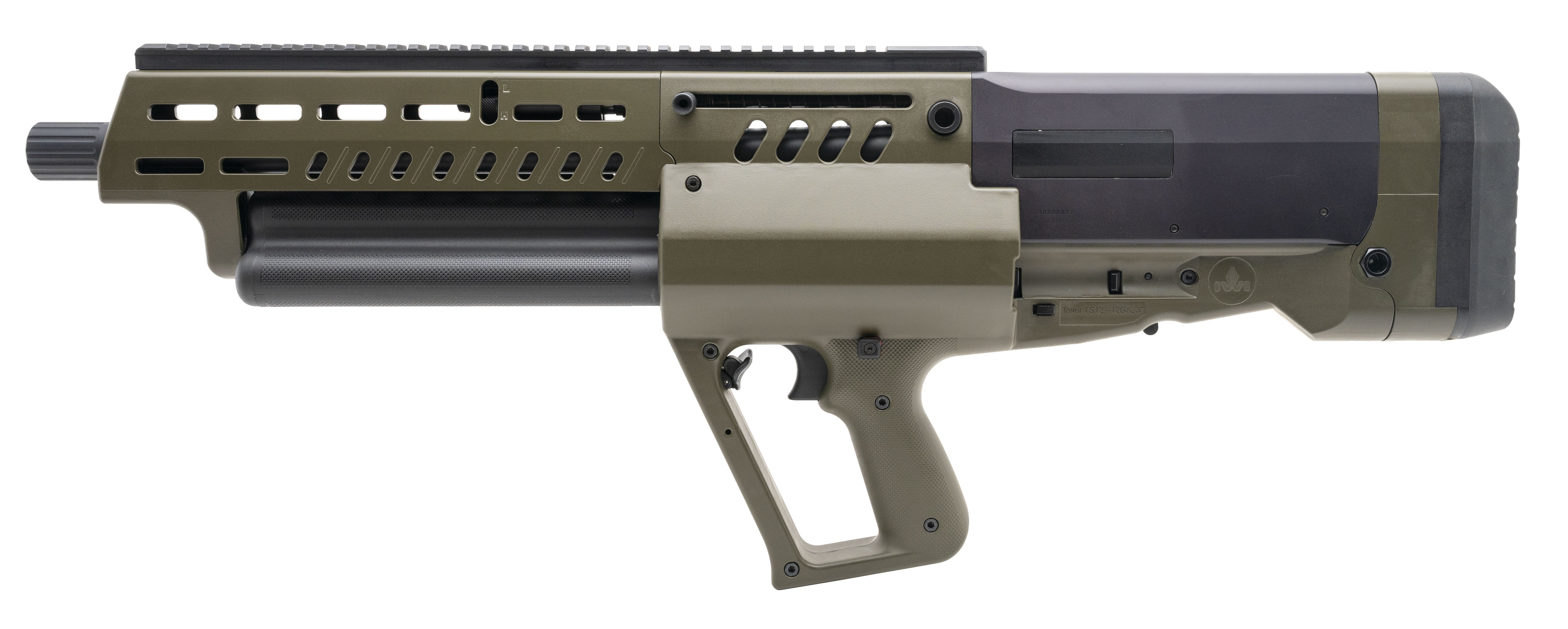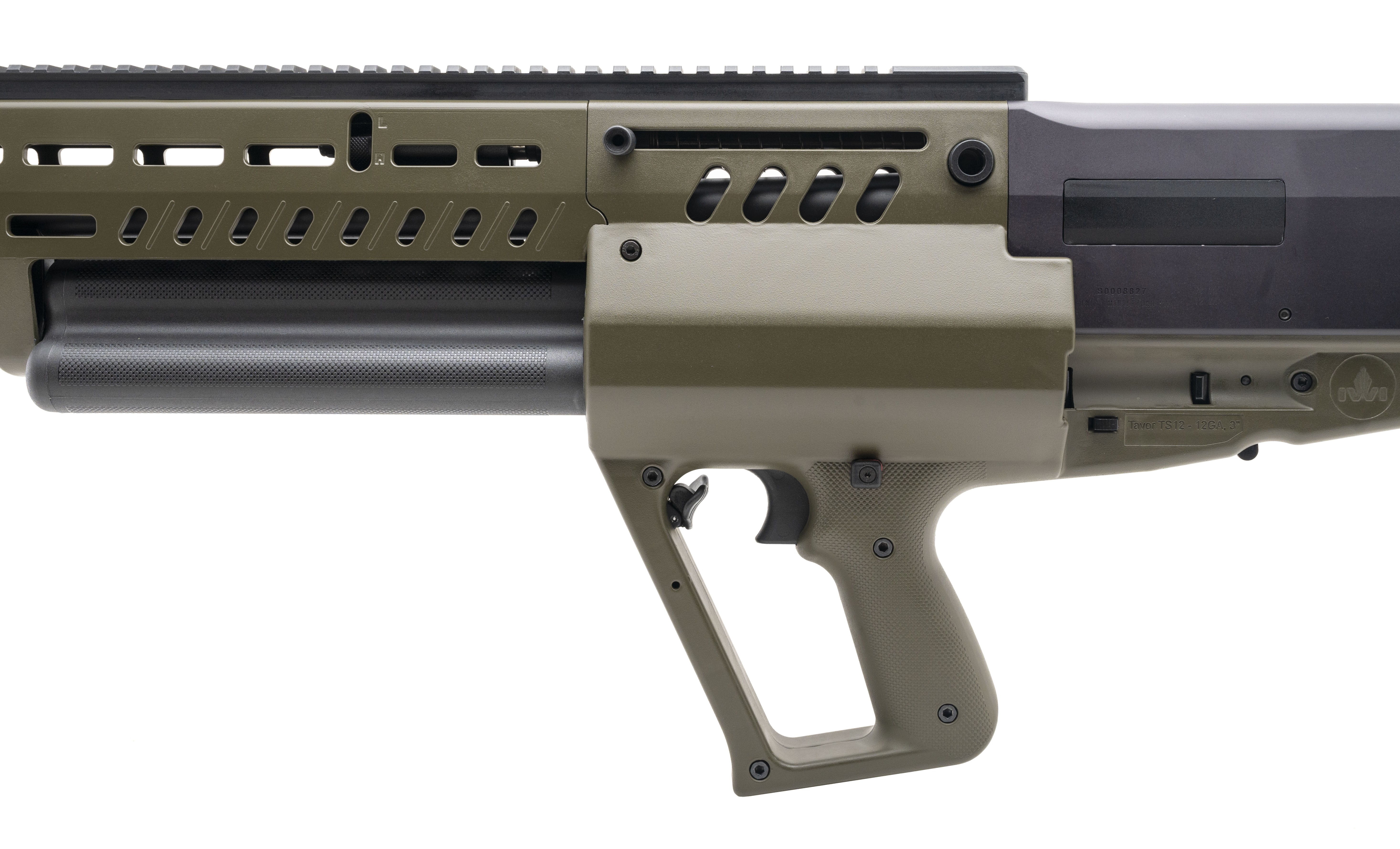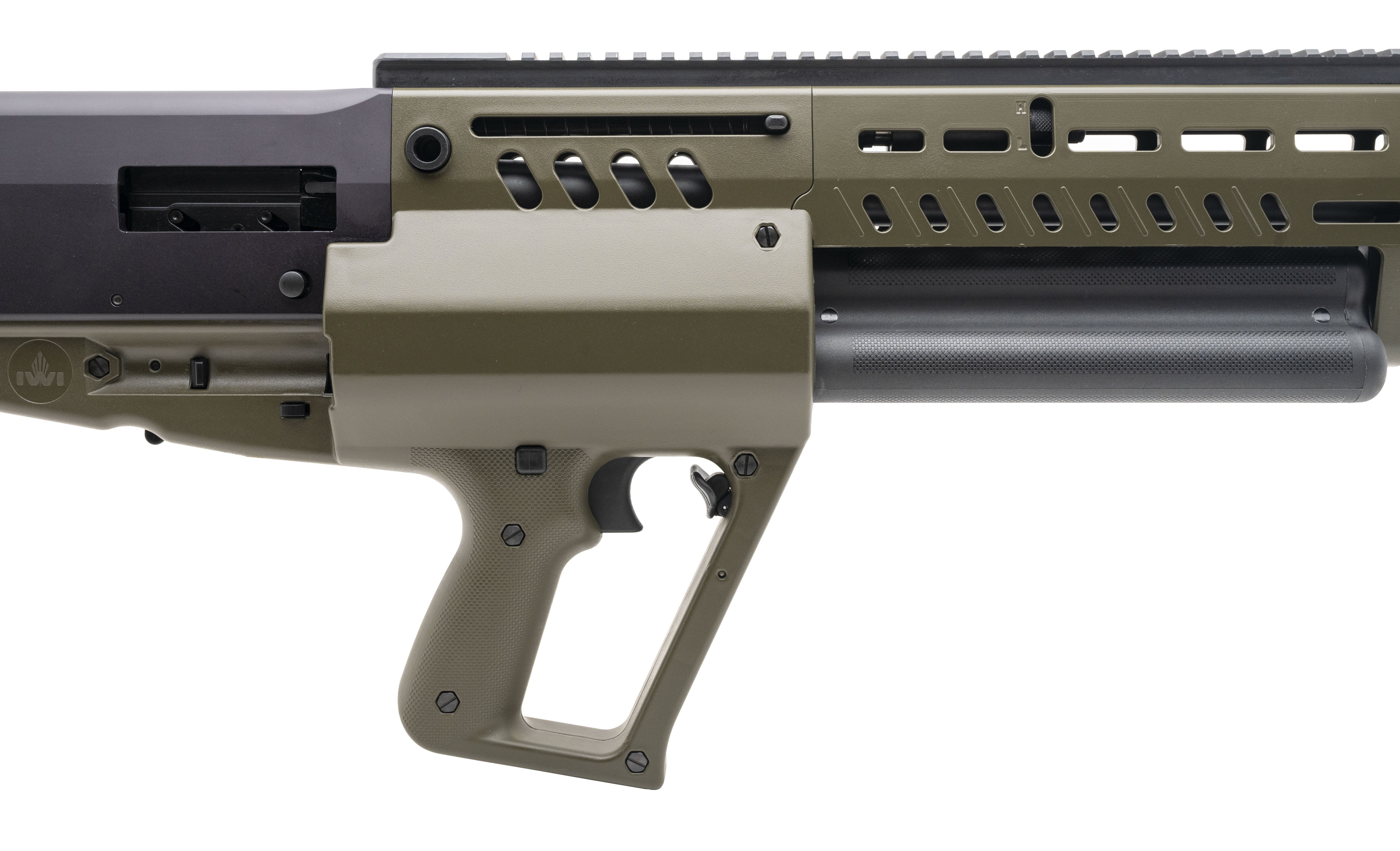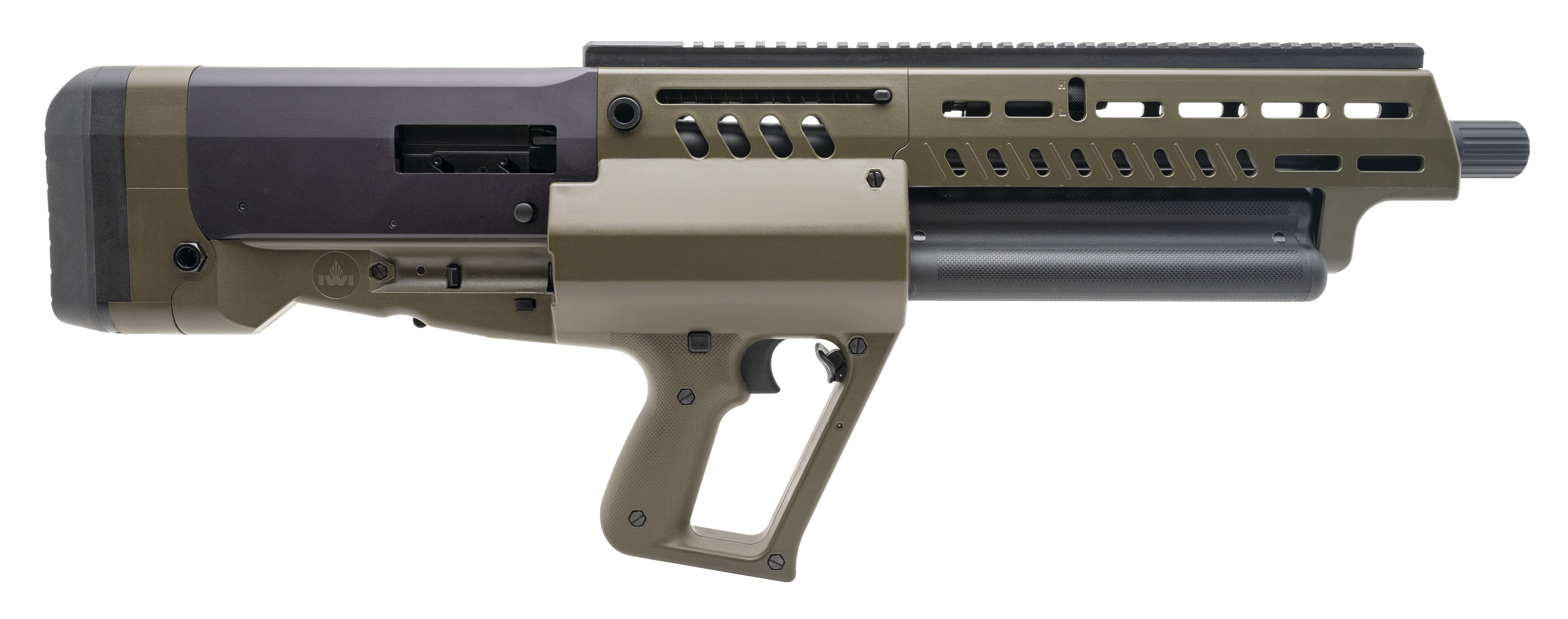 SN: B0008827. Modern production. 12 Gauge with a 18.5" barrel. Bore is in excellent condition. Israeli made semi-automatic home defense Bull-pup shotgun that accepts Beretta chokes. ODG finish is in excellent condition. Polymer fixed stock is in excellent condition. Overall condition is excellent. LOP is 14". Comes with box.