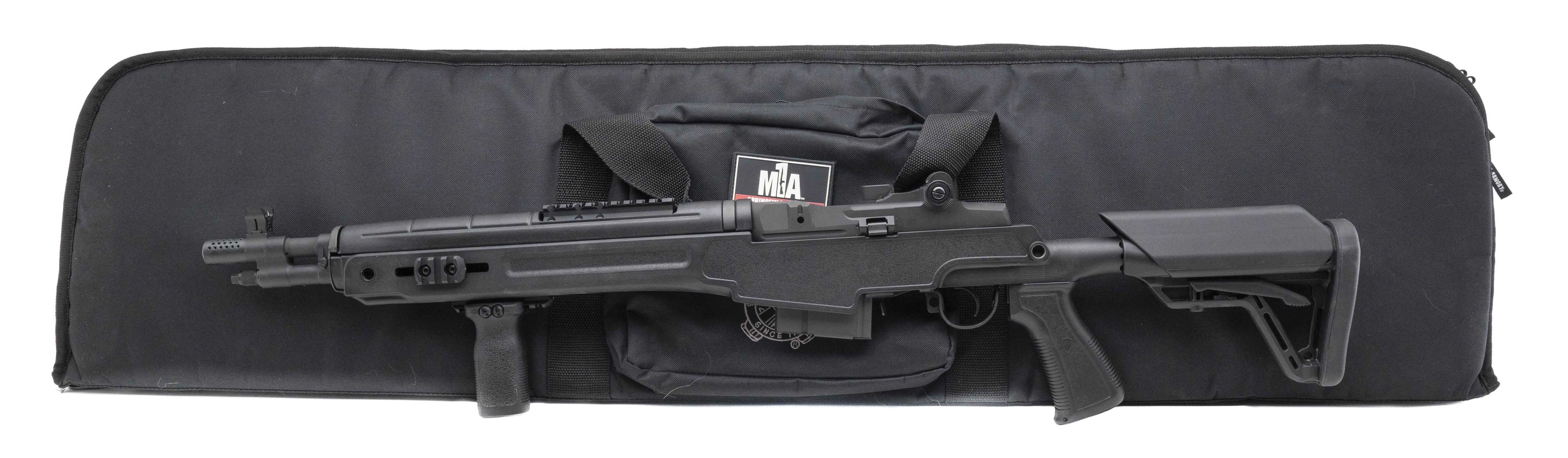 SN: 561320. Modern production. .308 Win with a 16" barrel. Bore is in excellent condition. Springfield semi-automatic tactical rifle with forend grip. Finish and adjustable stock are in excellent condition. Rifle has archangel stock. Overall condition is excellent. Comes with bag and extra magazine.