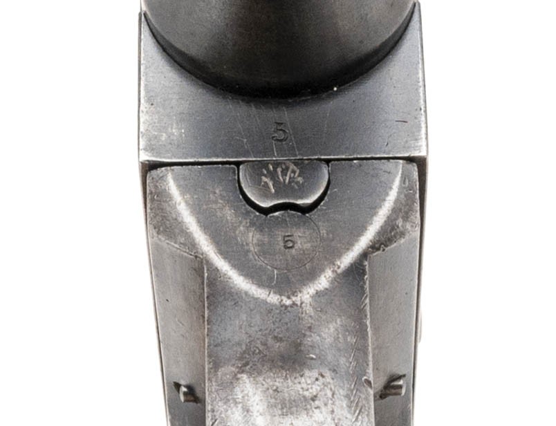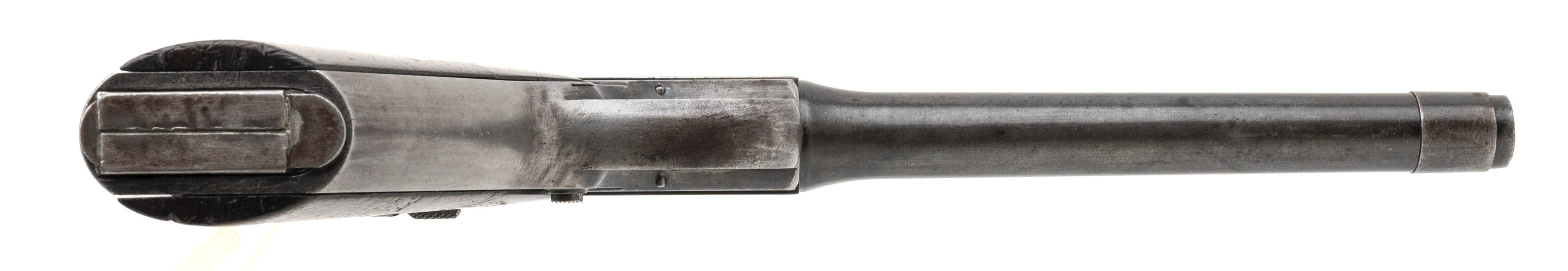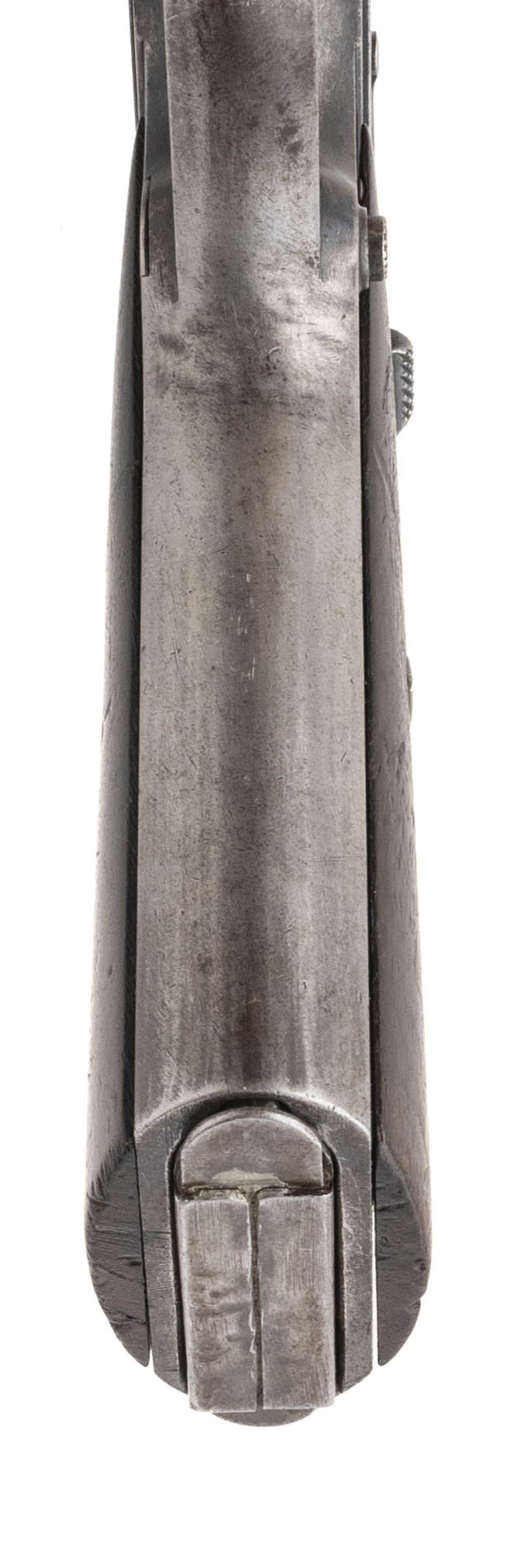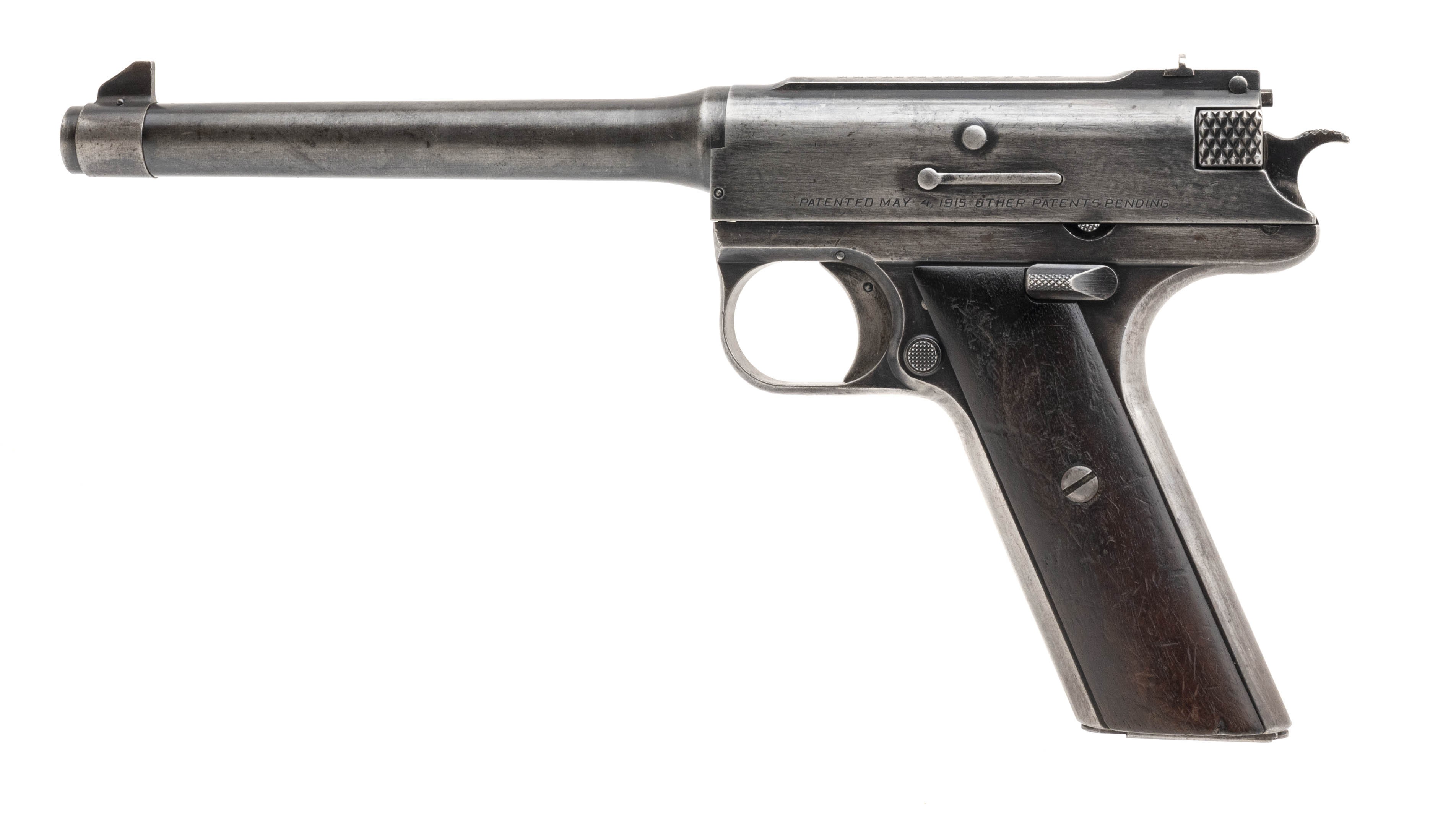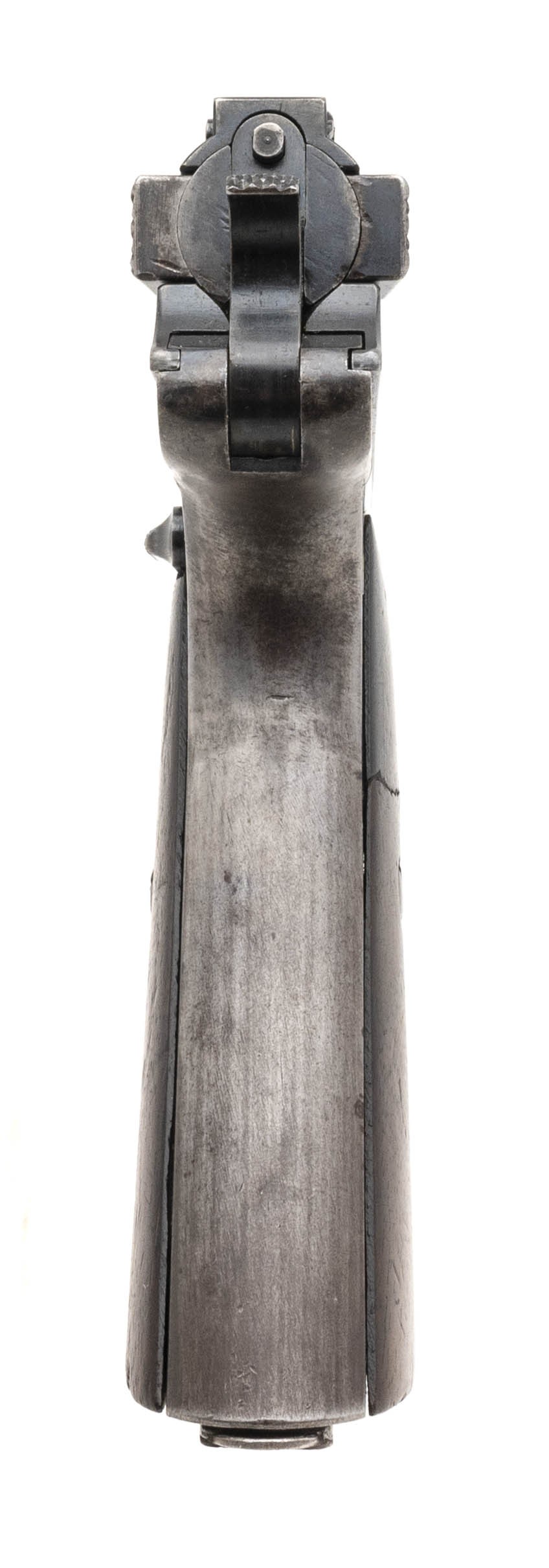 Serial number 5. Made circa 1915-1918. 45 Acp caliber with a 6 ½” barrel. This is a nice sharp gun with approximately 15% of the original blue. The metal was cleaned and probably a lot of the finish during the cleani9ng. The grips are very good. There is a repaired crack on the right hand side grip. Gun works perfectly. These guns were made to compete with the Colt 1911. This pistol was loved by the trial testers for its accuracy and handling, but had issues with the magazine release as well as an overly complicated disassembly compared to the 1911. According to U.S. Military Automatic Pistols 1894-1920 by Edward Scott Meadows, only 13 of these guns were produced this one being serial number 5. We have seen another Grant Hammond serial numbered 18. In any case, this is an incredibly rare opportunity to on an early contender to the Colt 1911!
