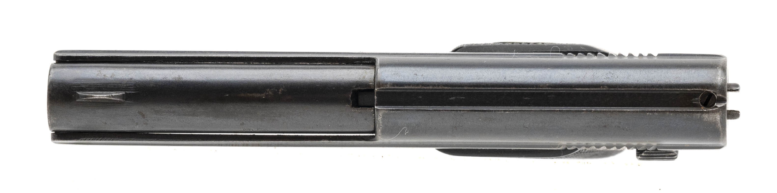 Serial number 926. Made circa 1925-1928. 4.25 mm caliber with a 1 ¾” barrel. This gun is in excellent condition with 95% of the original blue finish. The grips are excellent. Pistol has the impossible to find original magazine. These rare Liliput pistols are seldom offered on the open market and are usually sold privately from collector to collector. Overall length is 3 inches. These pistols were made by August Menz in Suhl Germany. Next to the Kolibri the Liliput is the smallest automatic pistol!