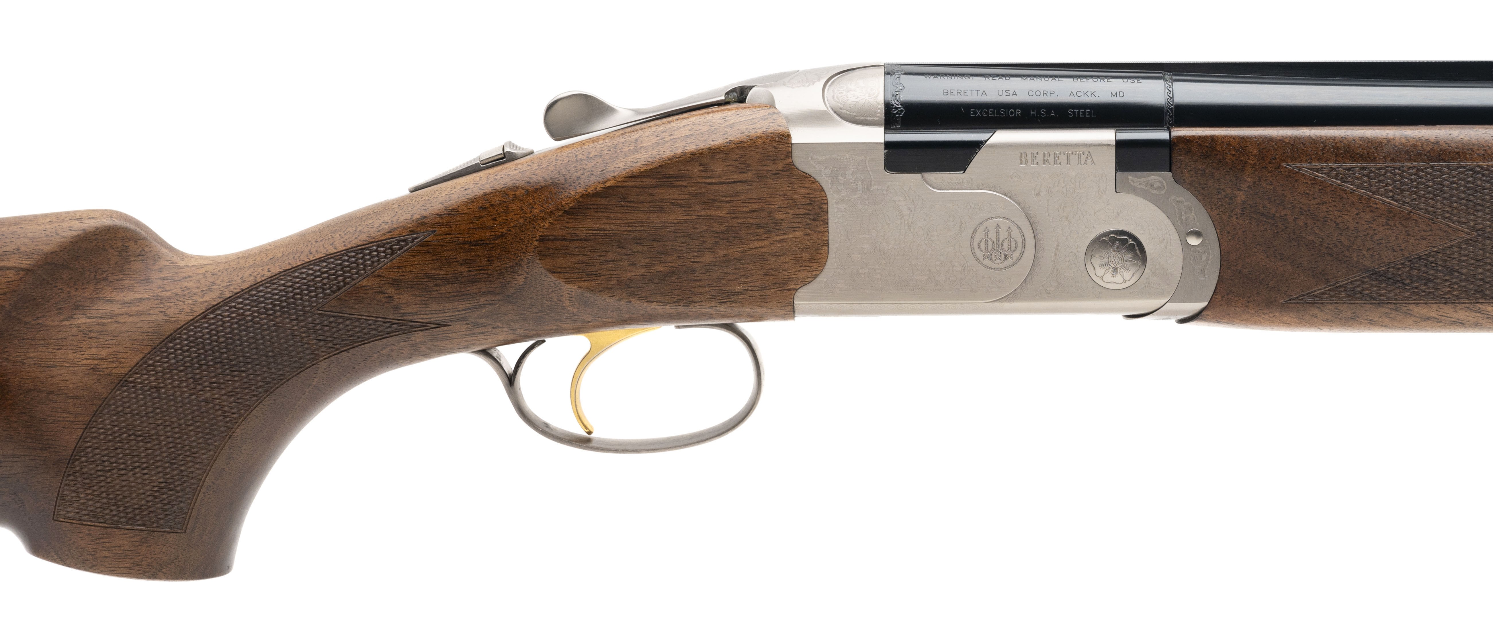 SN: H14245X. Modern production. 12 Guage with 28" vent rib barrels with screw in chokes. Bores are in excellent condition. Beretta O/U field shotgun with engraved receiver. Finish is in excellent condition. Checkered wood stock is in excellent condition. LOP is 14.75". Overall condition is excellent. Comes with case and extra chokes.
