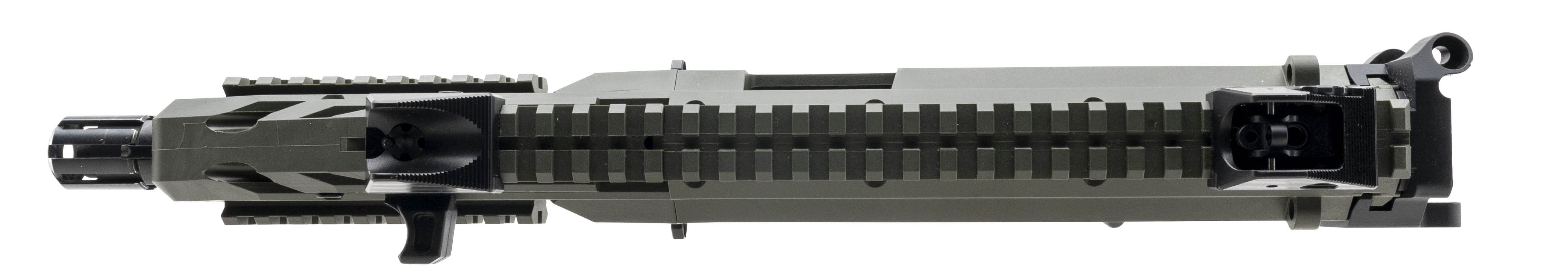 SN:F070754. Modern production 9mm with a 8" barrel. Bore is excellent. Tactical pistol with green finish, adjustable sights, and hand stop. Overall condition is excellent.
