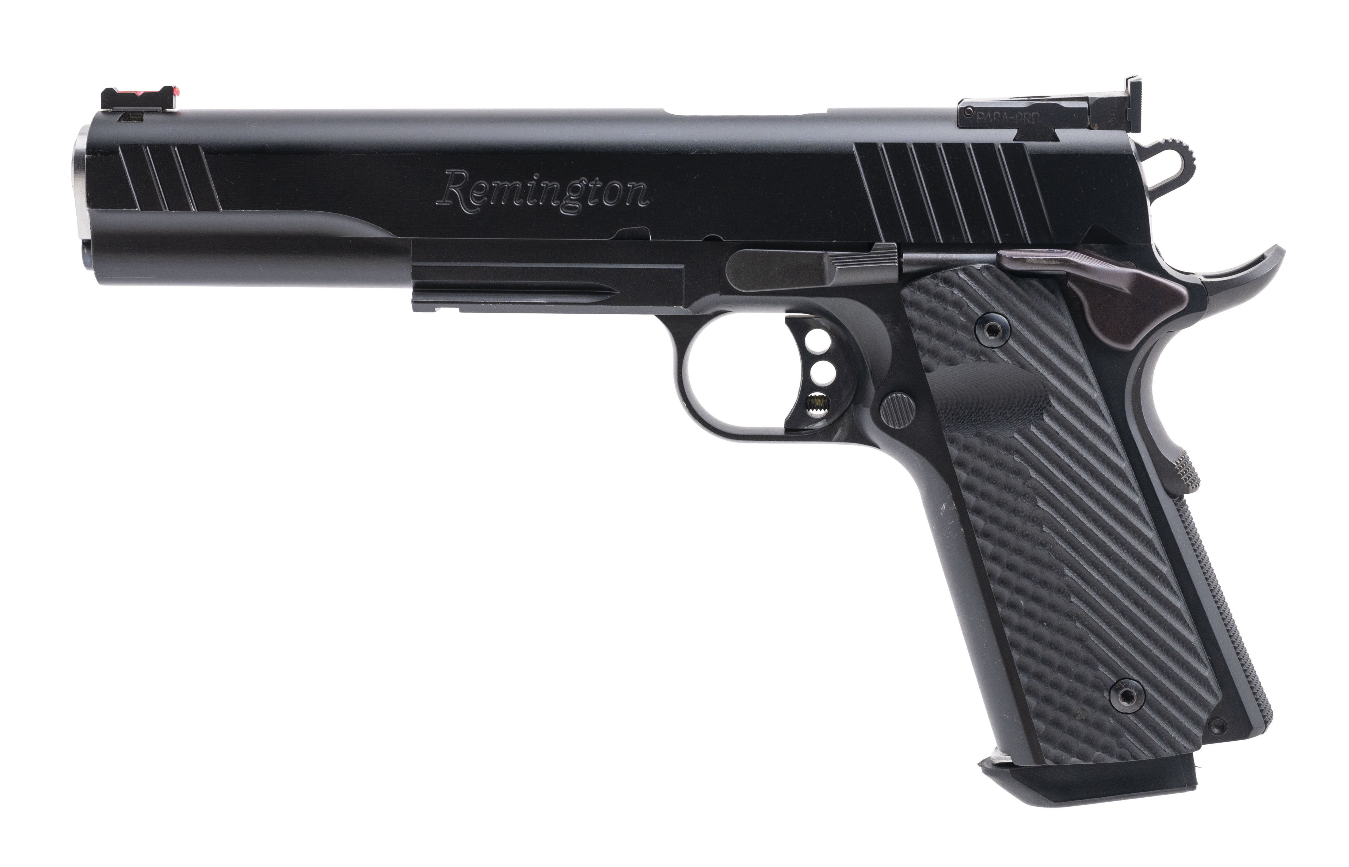 SN: RHD001040. Modern production. 10mm with a 6" barrel. Bore is in excellent condition. Remington 1911 steel framed handgun with fiber optic front sight. Finish is in excellent condition. Grips are in excellent condition. Overall condition is excellent.