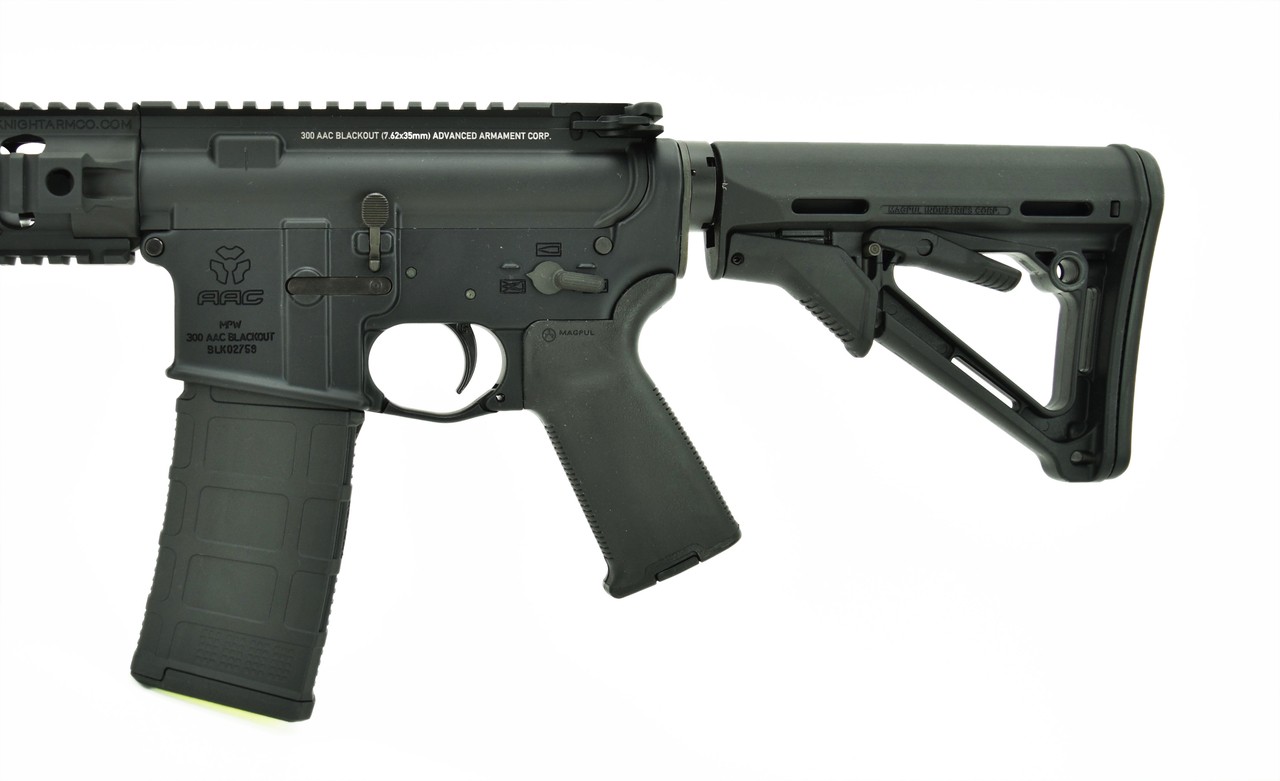 Advanced Armament MPW 300 AAC blackout caliber rifle with 51T flash hider, Knights URX 3.1 rail and Magpul furniture. New.