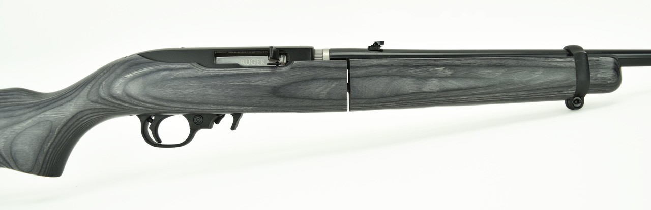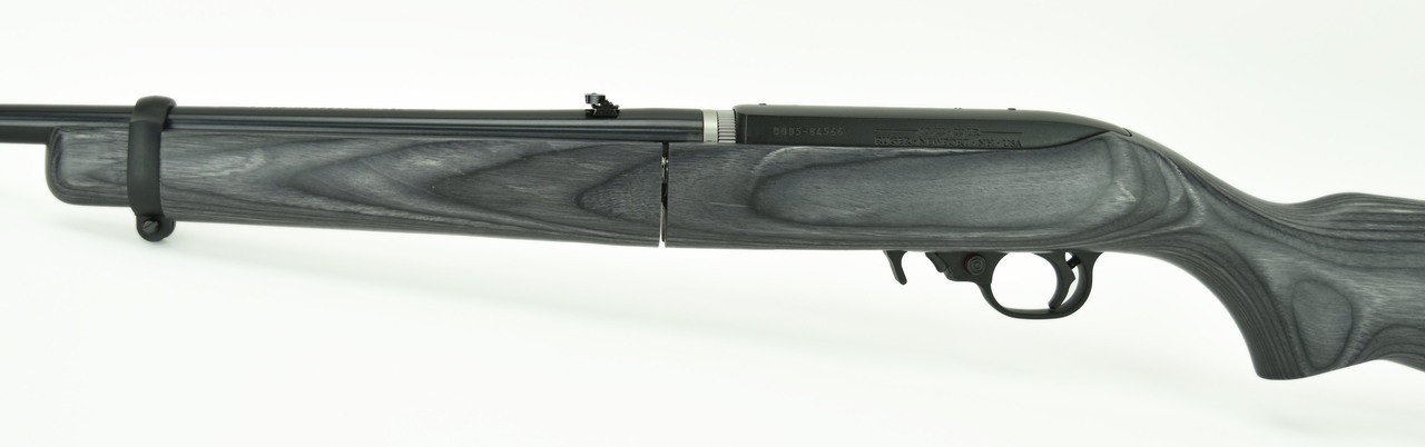 Ruger 10/22.22 LR caliber rifle. Takedown model with laminate wood with black metal and flash hider.New