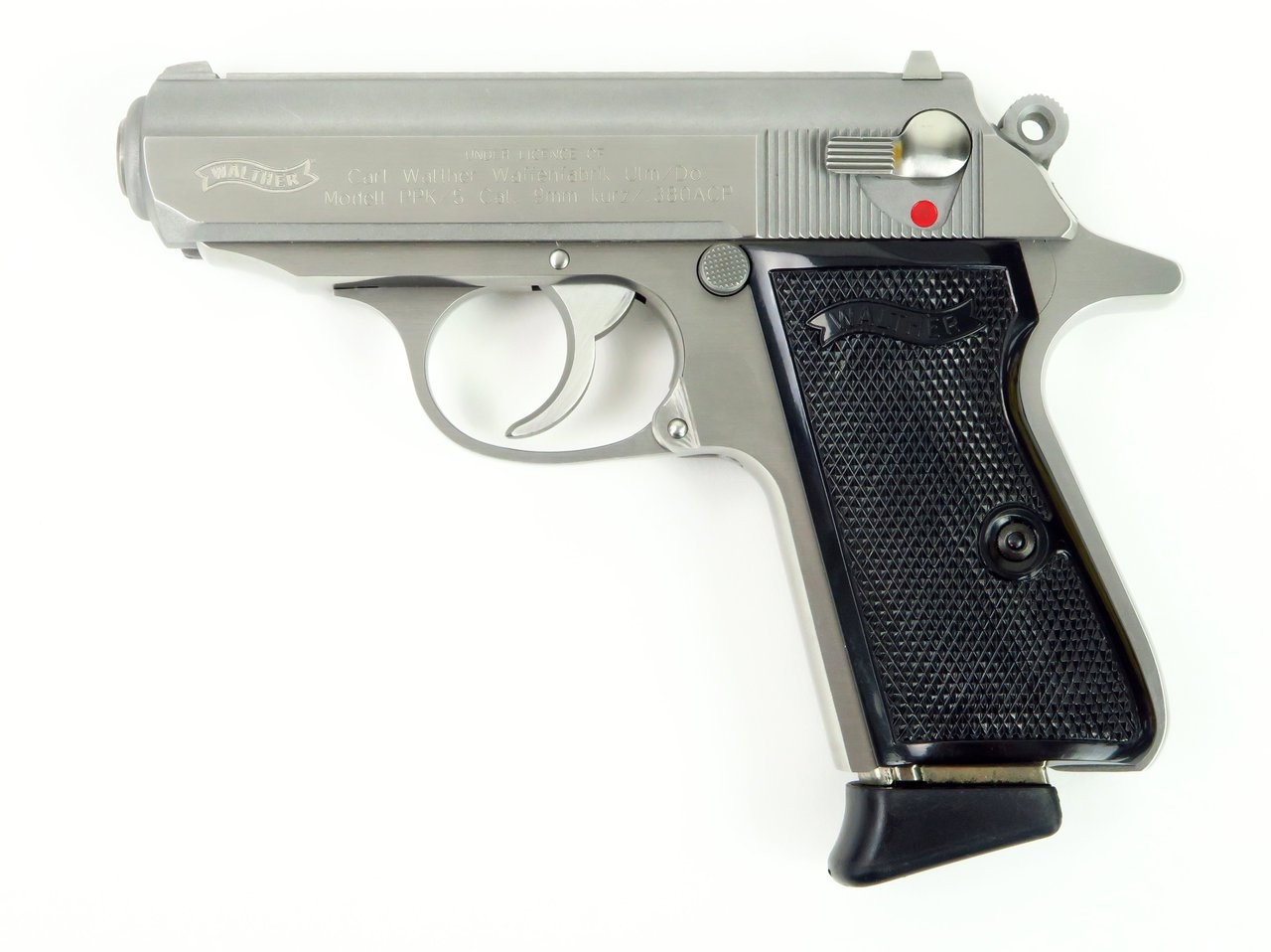 Walther PPK/S 9mm Kurz (.380 ACP) caliber pistol. Stainless steel model in excellent condition with box and extra magazine.