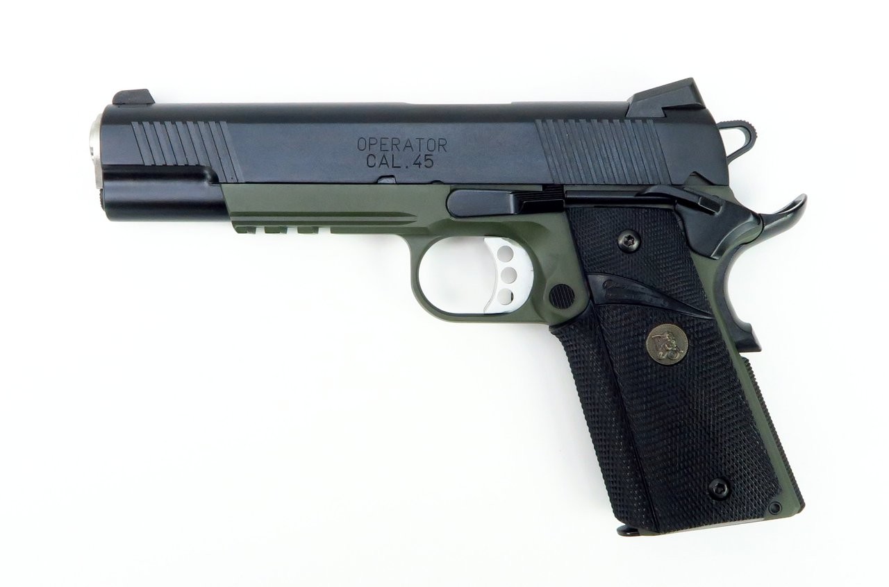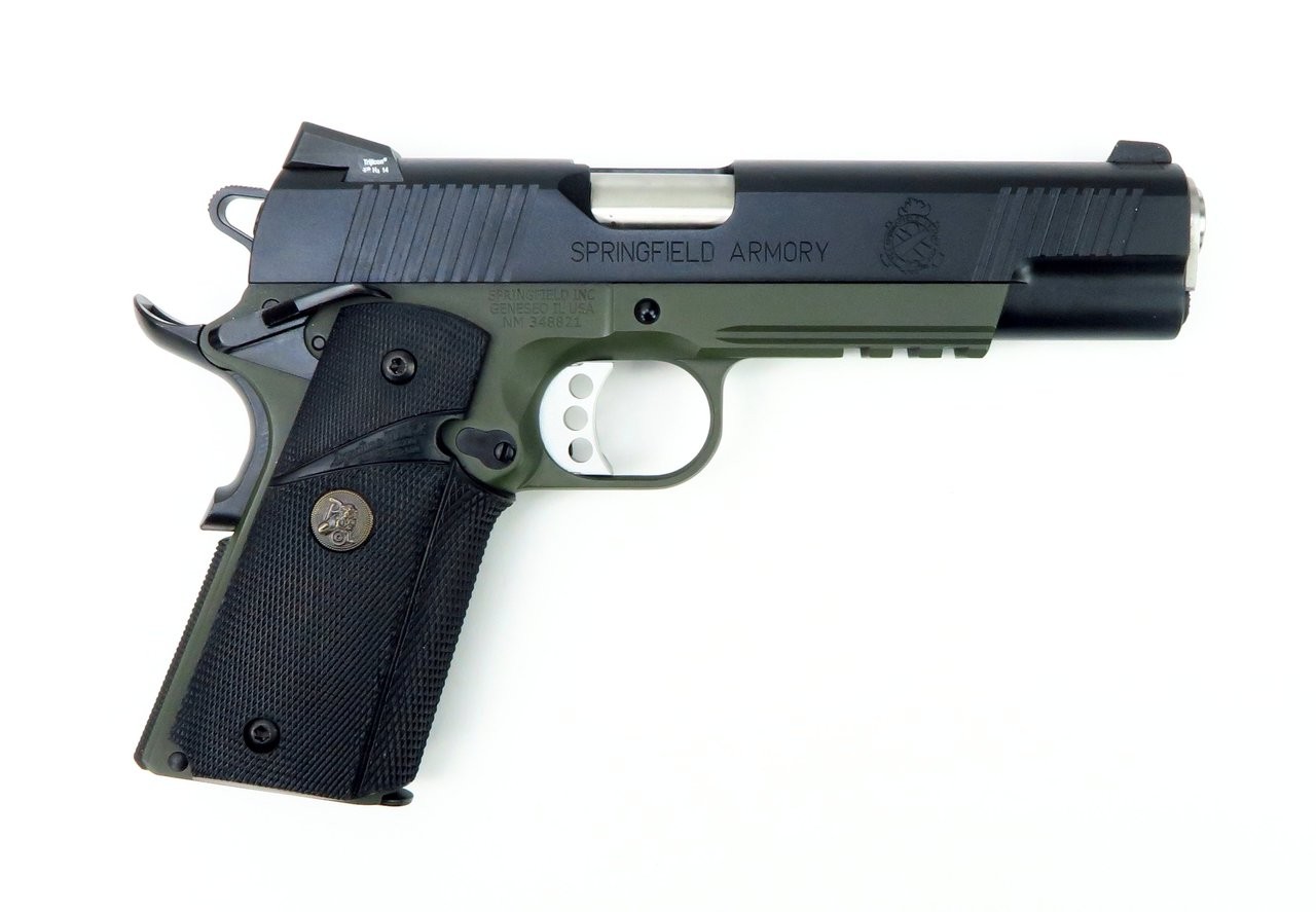 Springfield “Marine Corps” Operator .45 ACP caliber pistol. Comes with OD green frame, night sights, ambi safety, box, extra magazine, and gear in excellent condition.