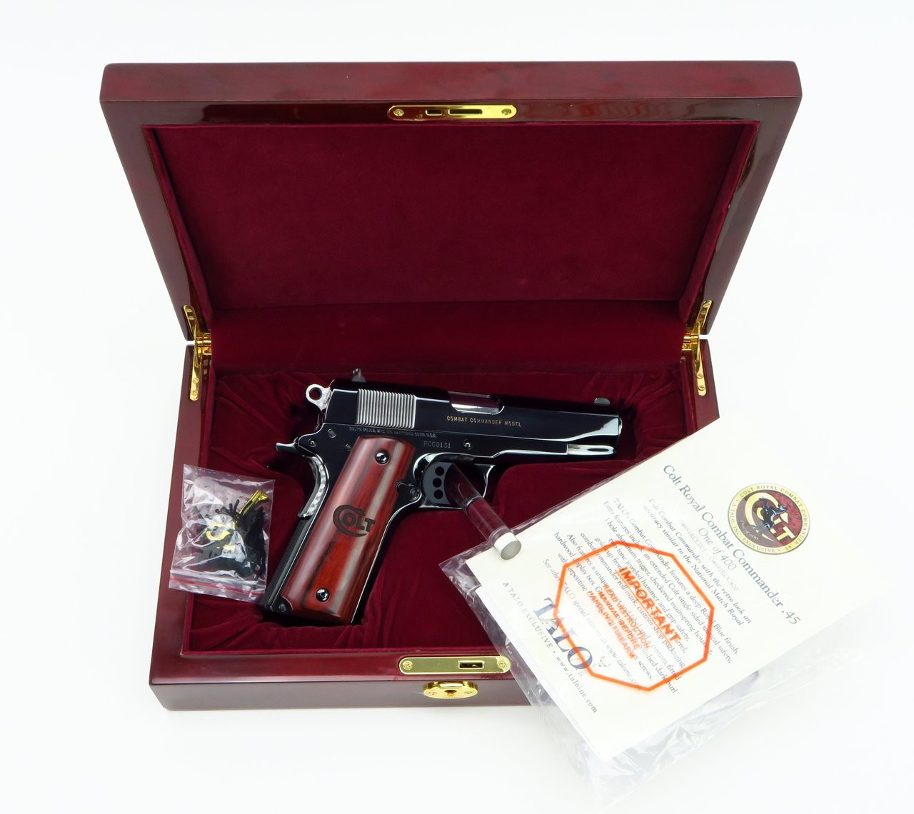 Colt Royal Combat Commander .45 ACP caliber pistol. Royal Combat Commander limited edition with high polish blue finish. With wooden case.