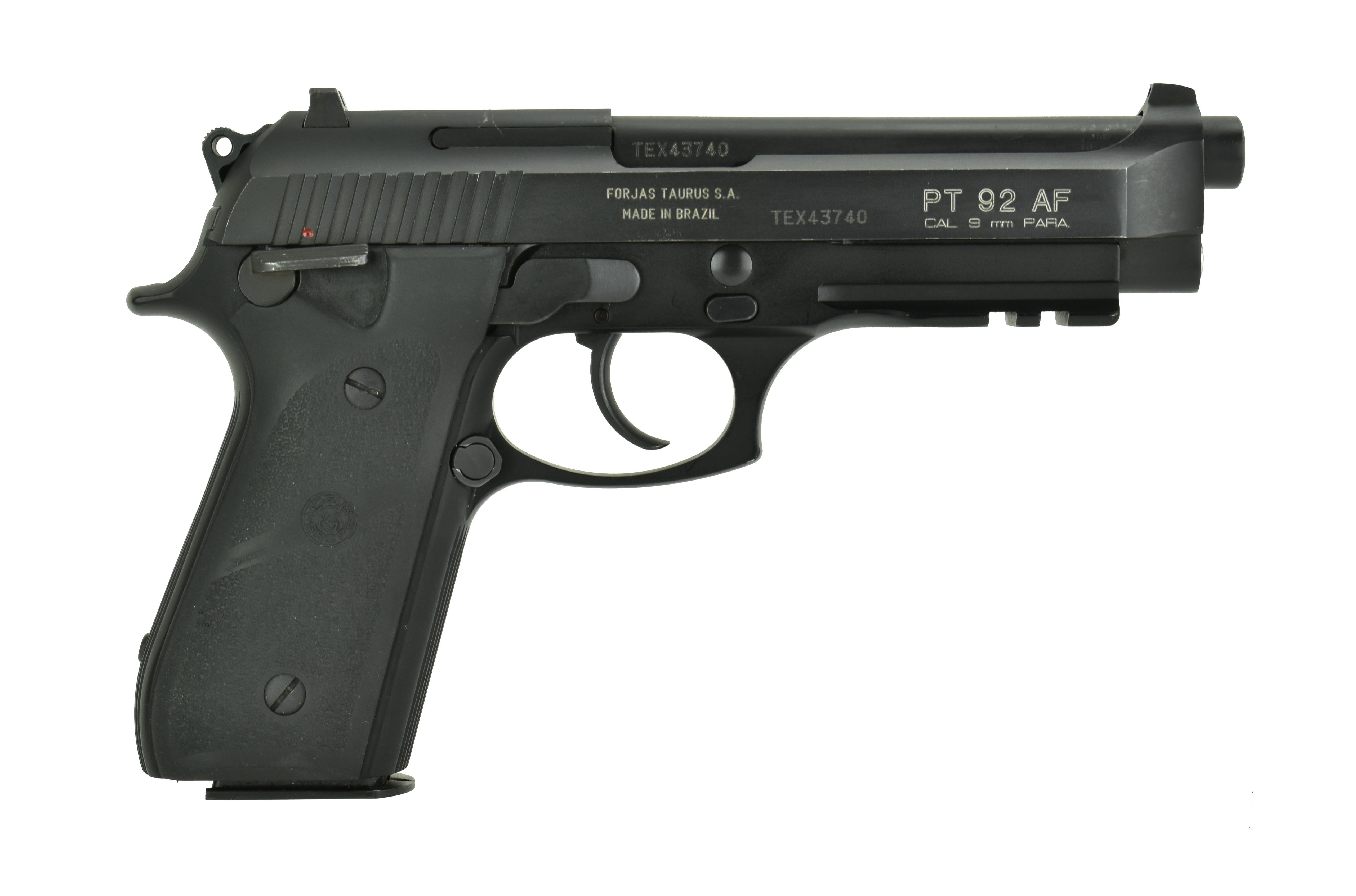 Taurus PT92AF 9mm caliber pistol. Full size model with rail in very good condition.