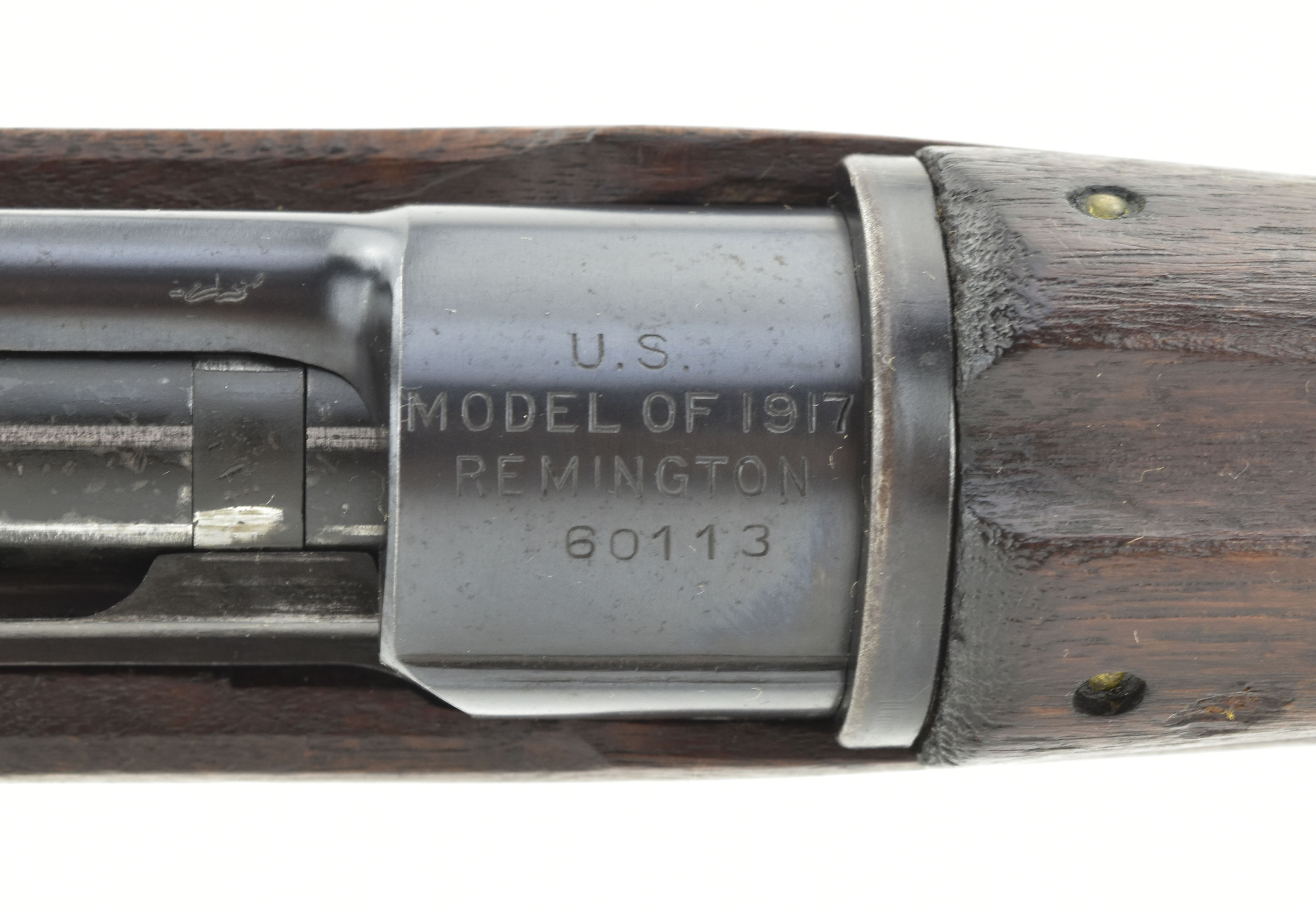 Remington 1917 .30-06 caliber rifle. WWI U.S. Military rifle, arsenal refurbished. Barrel is marked “R” and dated 12-1917. Bolt is stamped “E”. Bore is excellent. Very good overall condition.