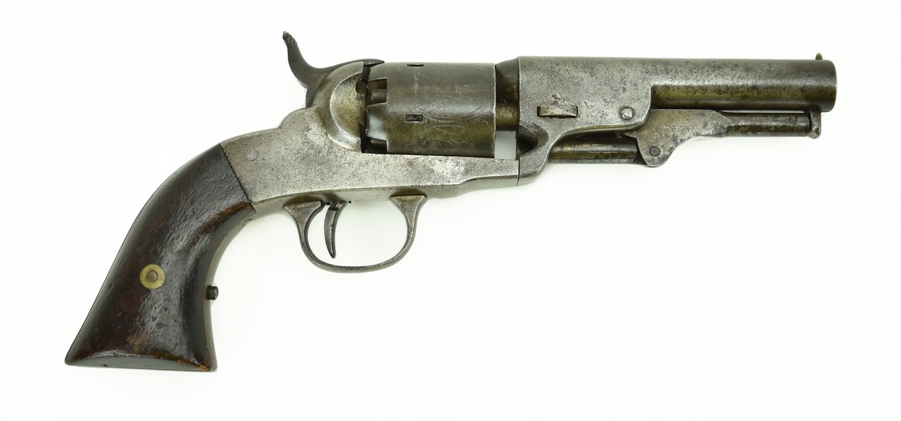 Hopkins & Allen Pocket by Bacon Manufacturing. 4” barrel in 31 caliber. Grey patina on metal. Made by Bacon Manufacturing Company. Action works perfect. Very good grips. Only 1,000 of these guns were marked this way.
