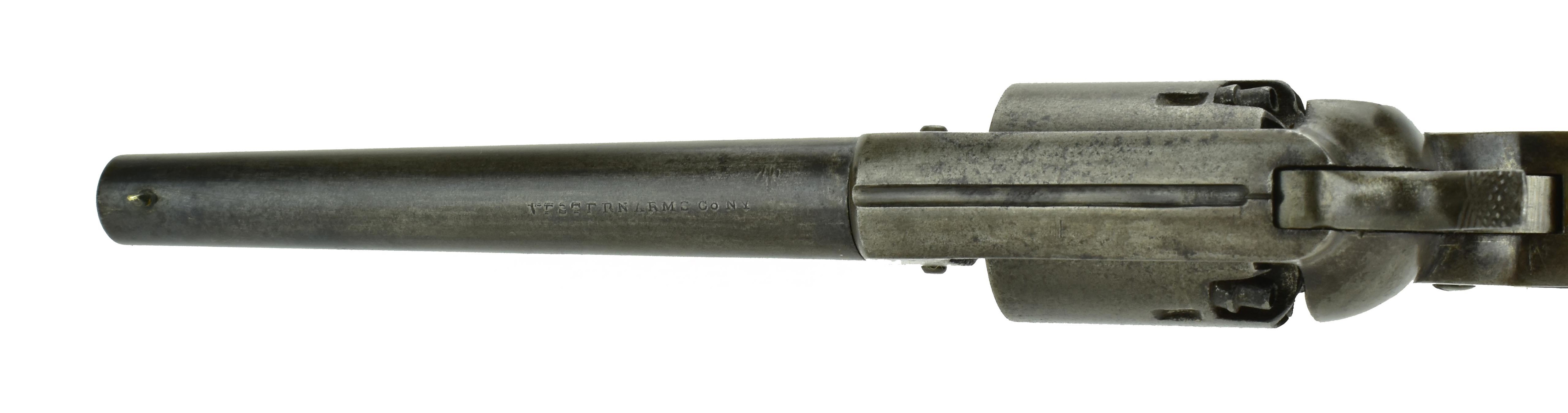Has a 5 3/8" round barrel. Top of barrel is marked "Western Arms Co." Marking is worn but easily legible. Serial number 11,929. Grips are very good plus with minor handling marks. Grips have 98% original factory varnish. Bore is very good. Action works perfectly. This is a neat looking design and a revolver you don't see often!