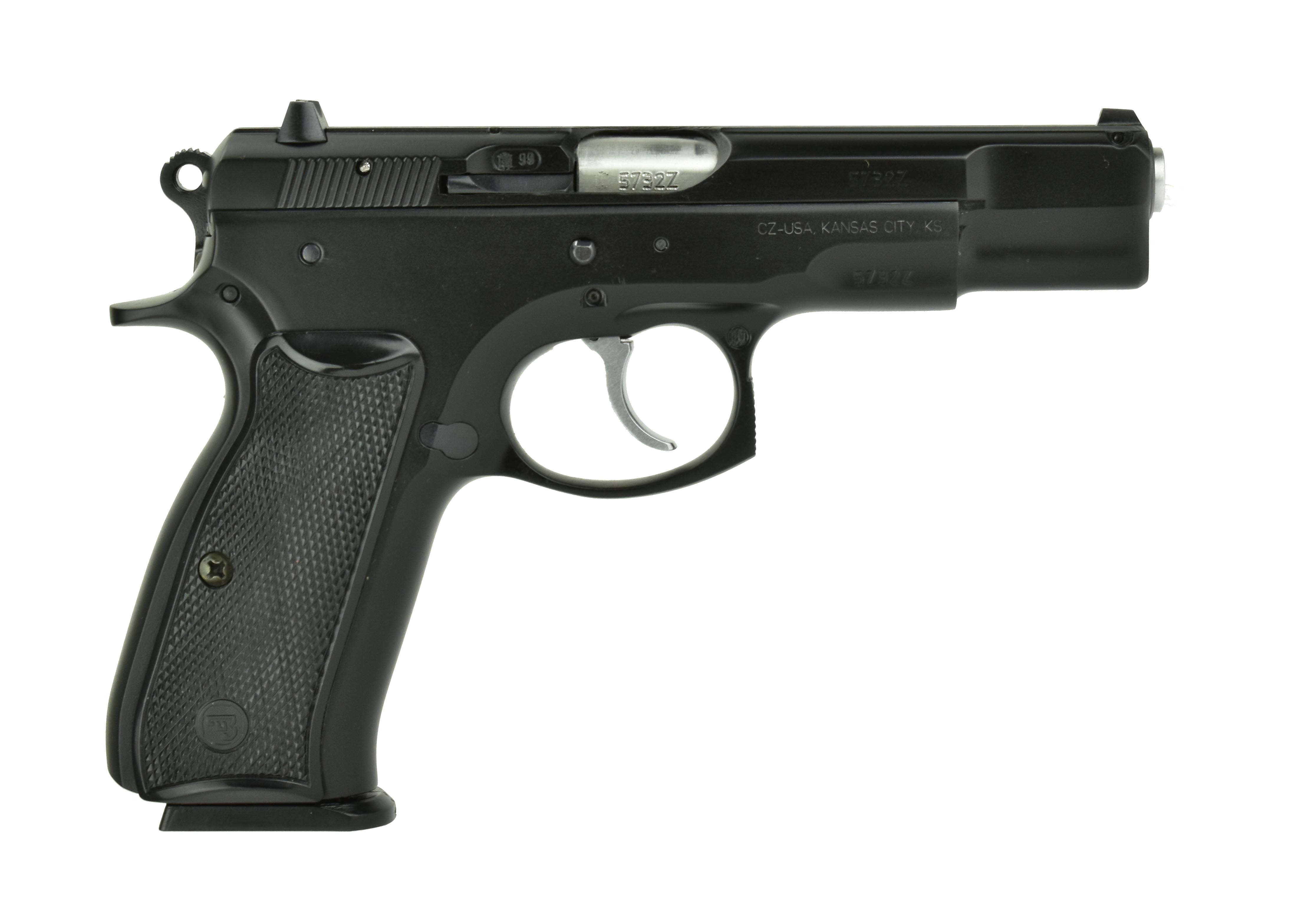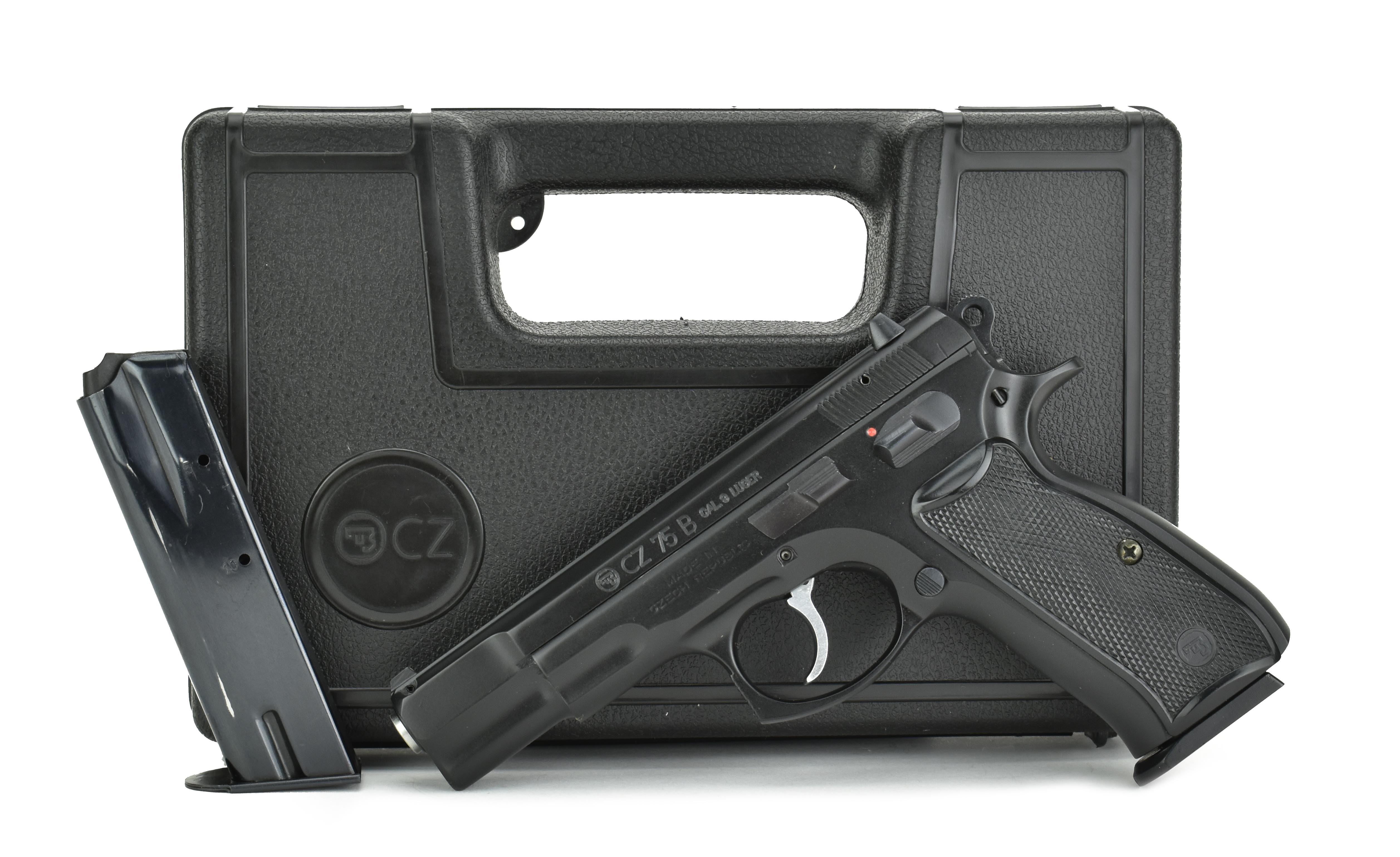 CZ 75B 9mm caliber pistol. All steel model with thumb safety, box, and magazine. Excellent condition.