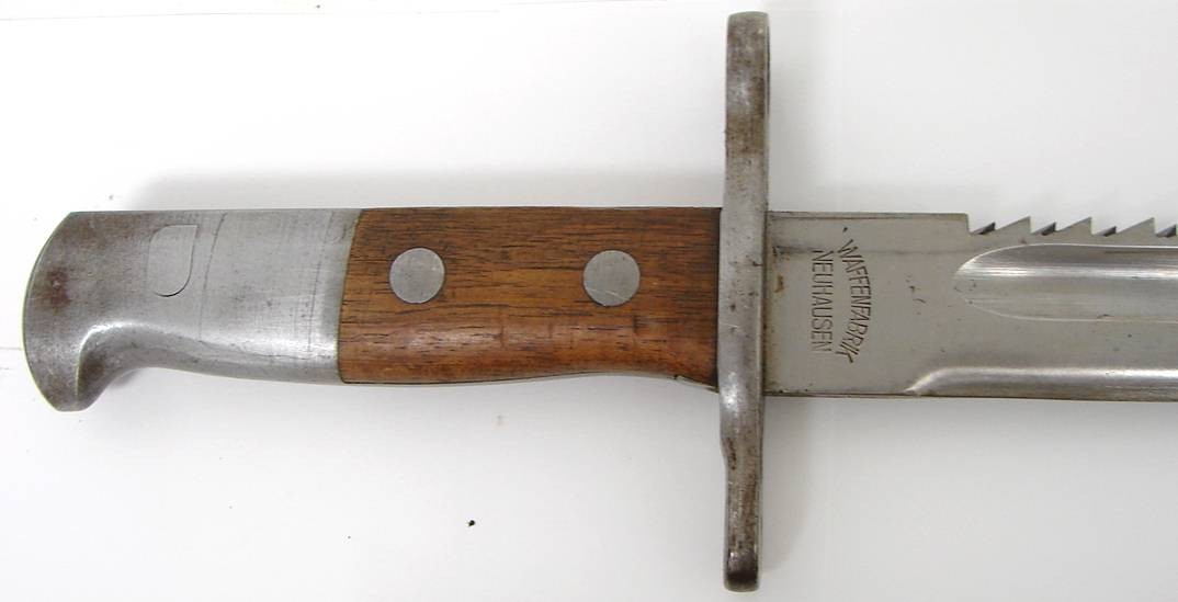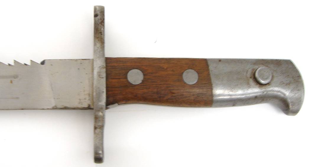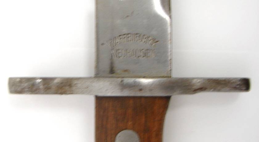 German/Saxon Pioneer's short sword. Scabbard and guard are unit marked; not to the same unit. Scabbard is good. Blade has some light etching and is tu...