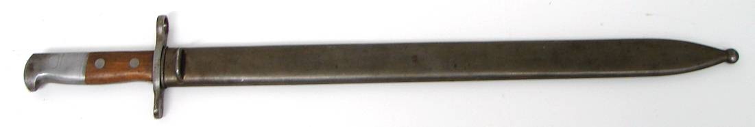 Rare Krag Bowie Bayonet with scabbard. Blade is 9.25" in length and marked "US" and 1900. Overall a great example of a rare martial bayonet. (DALLAS L...
