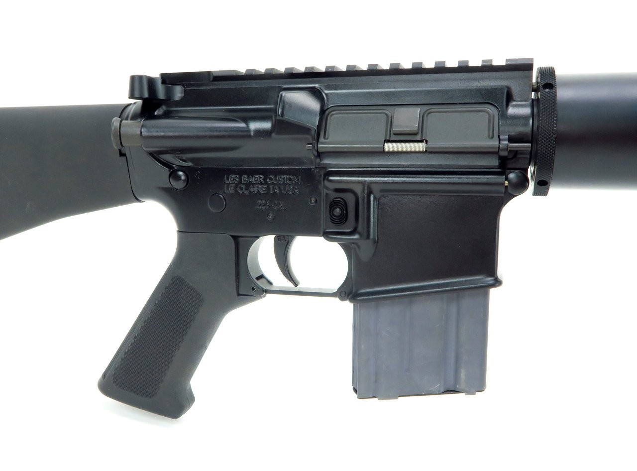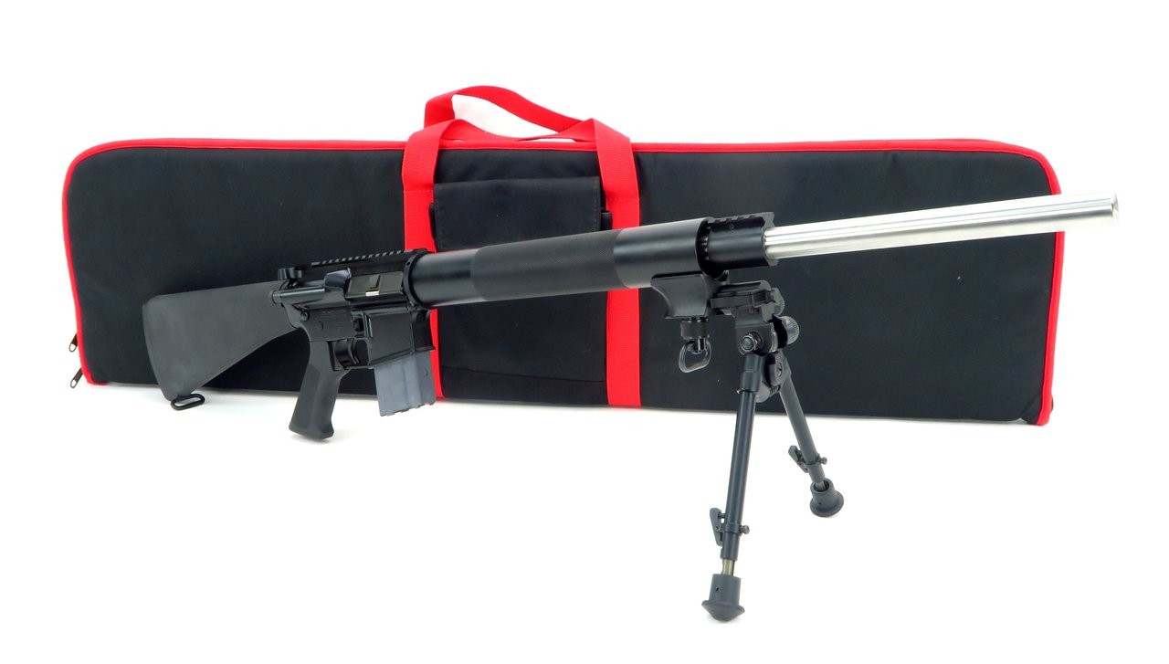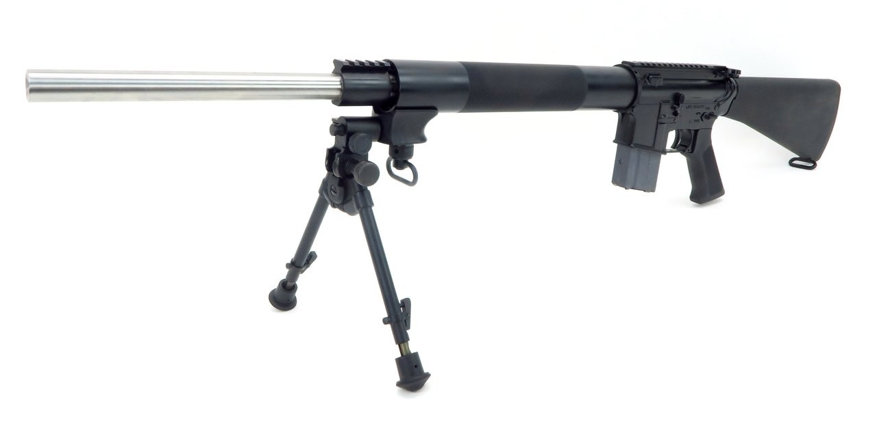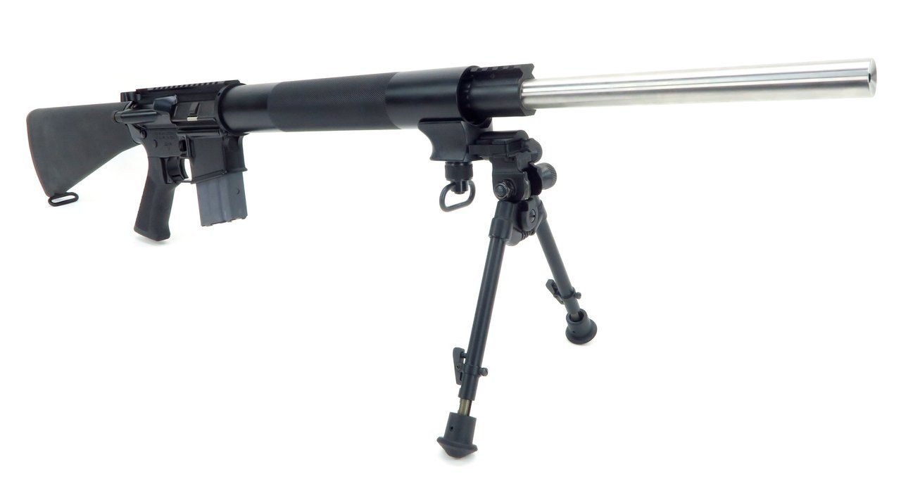 Les Baer Custom Ultimate AR .223 caliber rifle. Precision built AR with 24” bull barrel, Versa pod, Geissele trigger, and free float forearm.