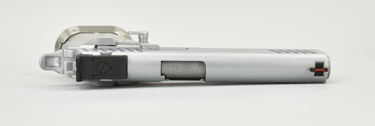 STI Executive .45 ACP caliber pistol. Hi-capacity Target pistol with chrome finish, magwell and fiber optic sight. New