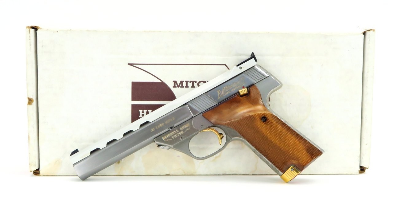 Mitchell Arms Victor .22 LR caliber pistol. Stainless steel target model in excellent condition with box.