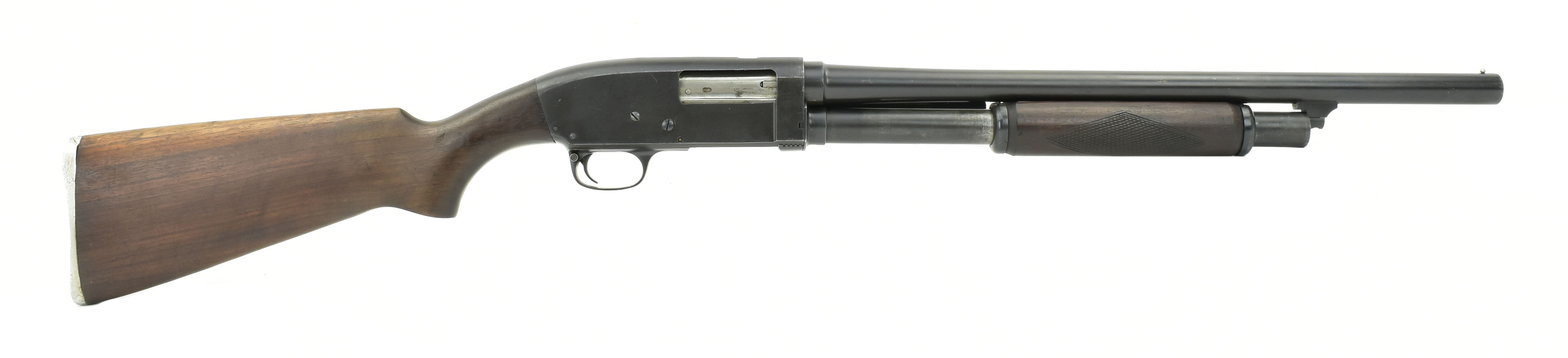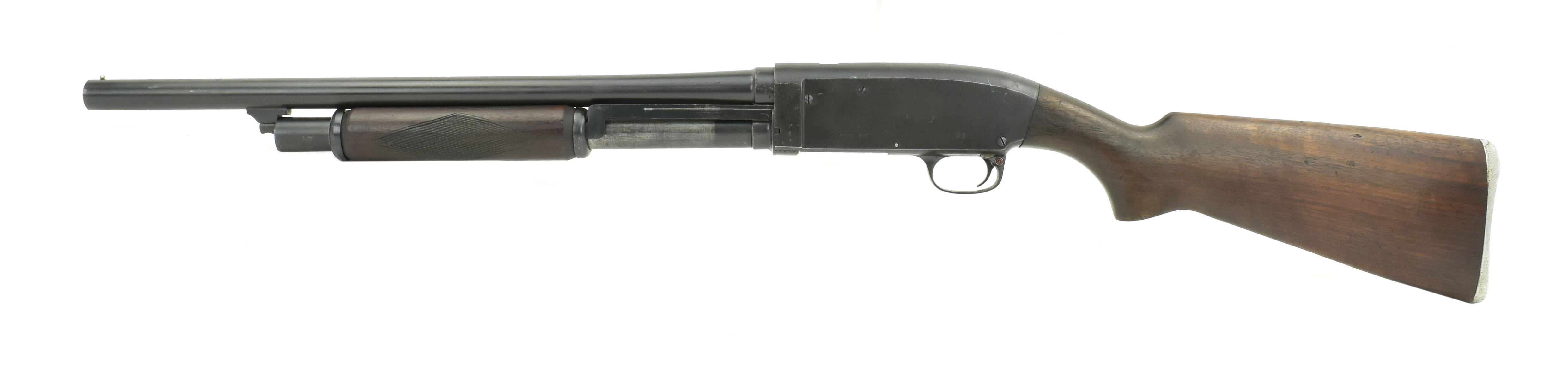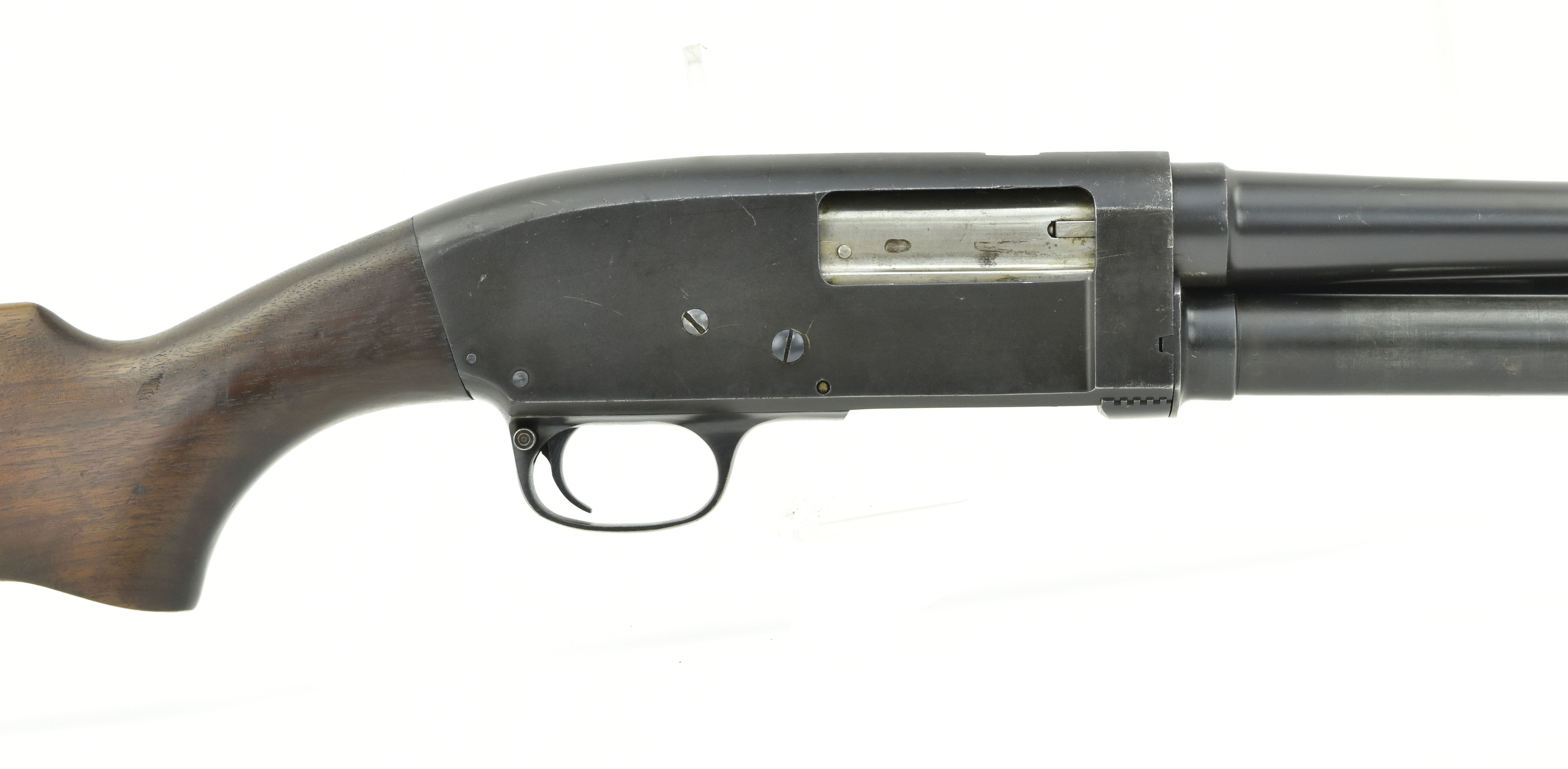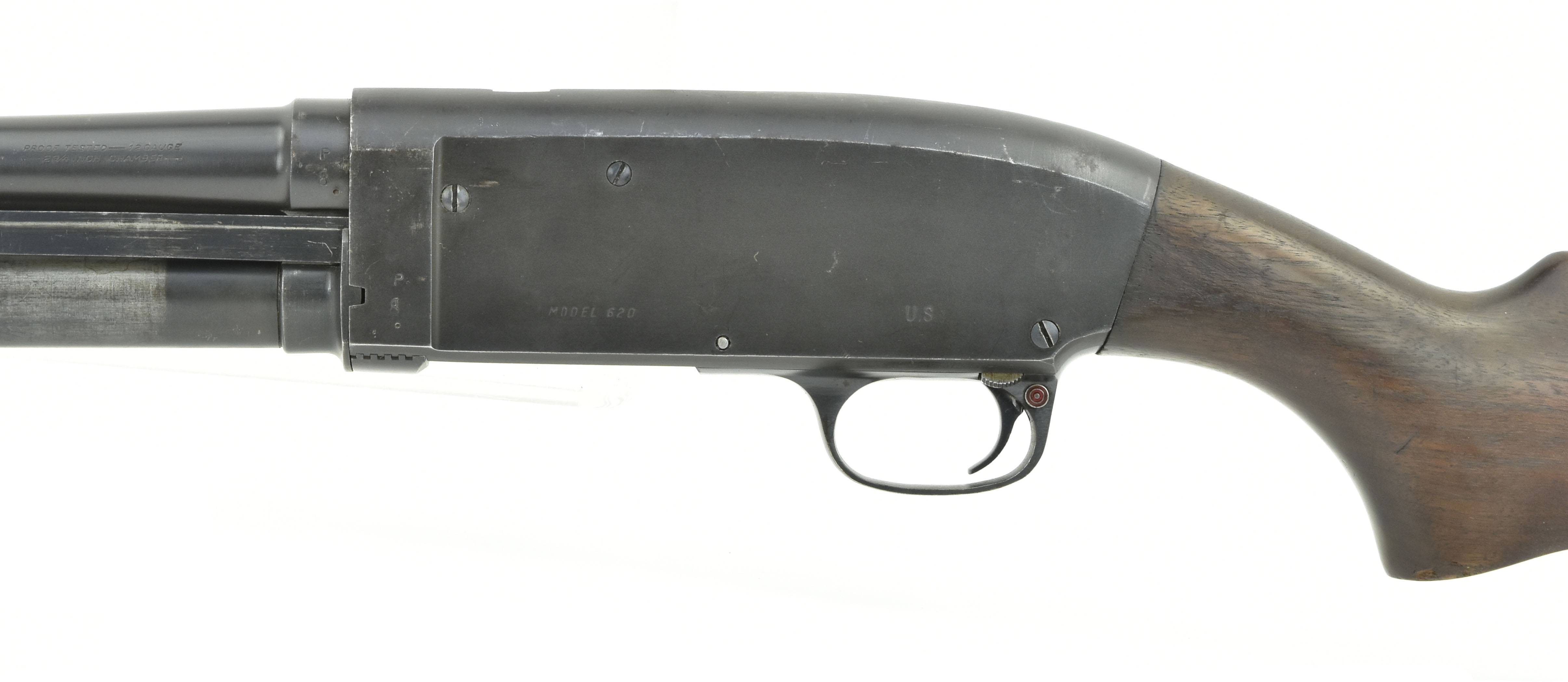 Stevens 620 12 Gauge shotgun. WWII U.S. riot gun. Barrel and receiver are P over flaming bomb marked. Receiver is “U.S.” marked. Butt plate is a later replacement. L.O.P. is approximately 14”. A hard to find WWII U.S. riot gun.