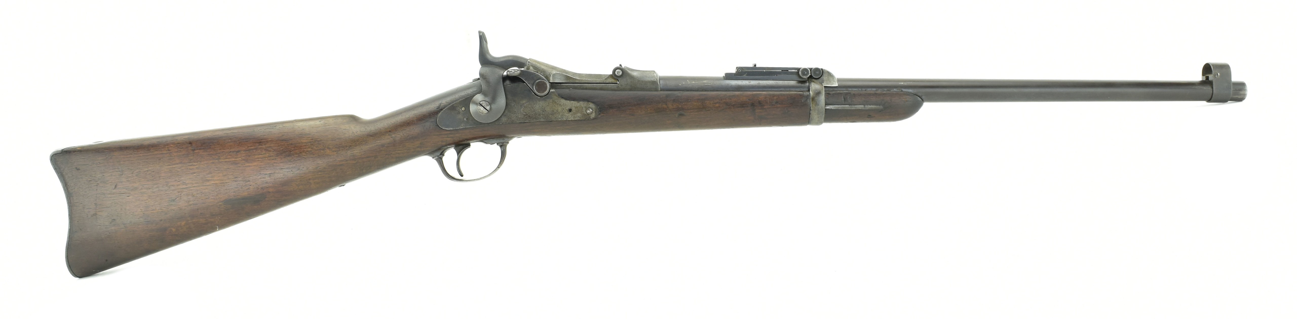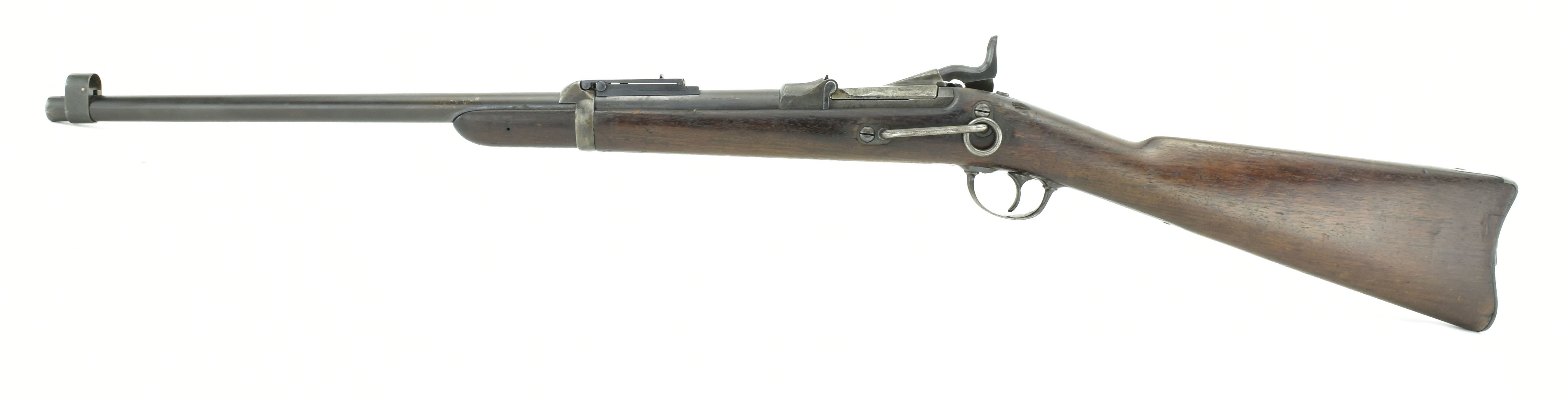 U.S. Springfield Model 1890 Trapdoor .45-70 caliber carbine. Good looking mode 1890 Trapdoor carbine. Metal has a gray patina. Stock is good, shows some storage and usage wear. Bore is bright with a few areas of pitting. Rifling is strong. Good looking Spanish-American War / late Indian Wars carbine!