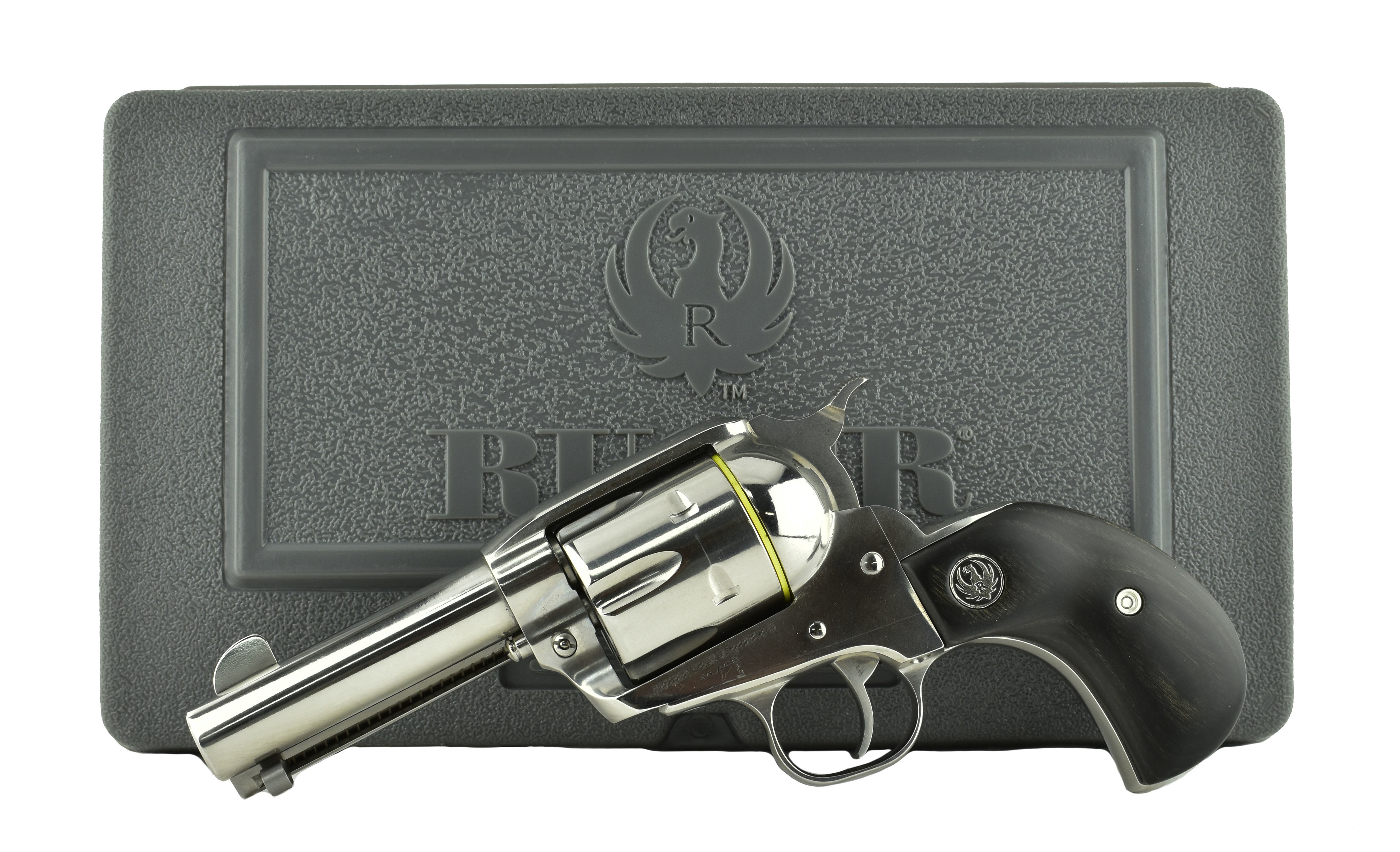 Ruger New Vaquero .45 ACP caliber revolver. 3 ¾” Stainless steel barrel, wood birds head grips. New