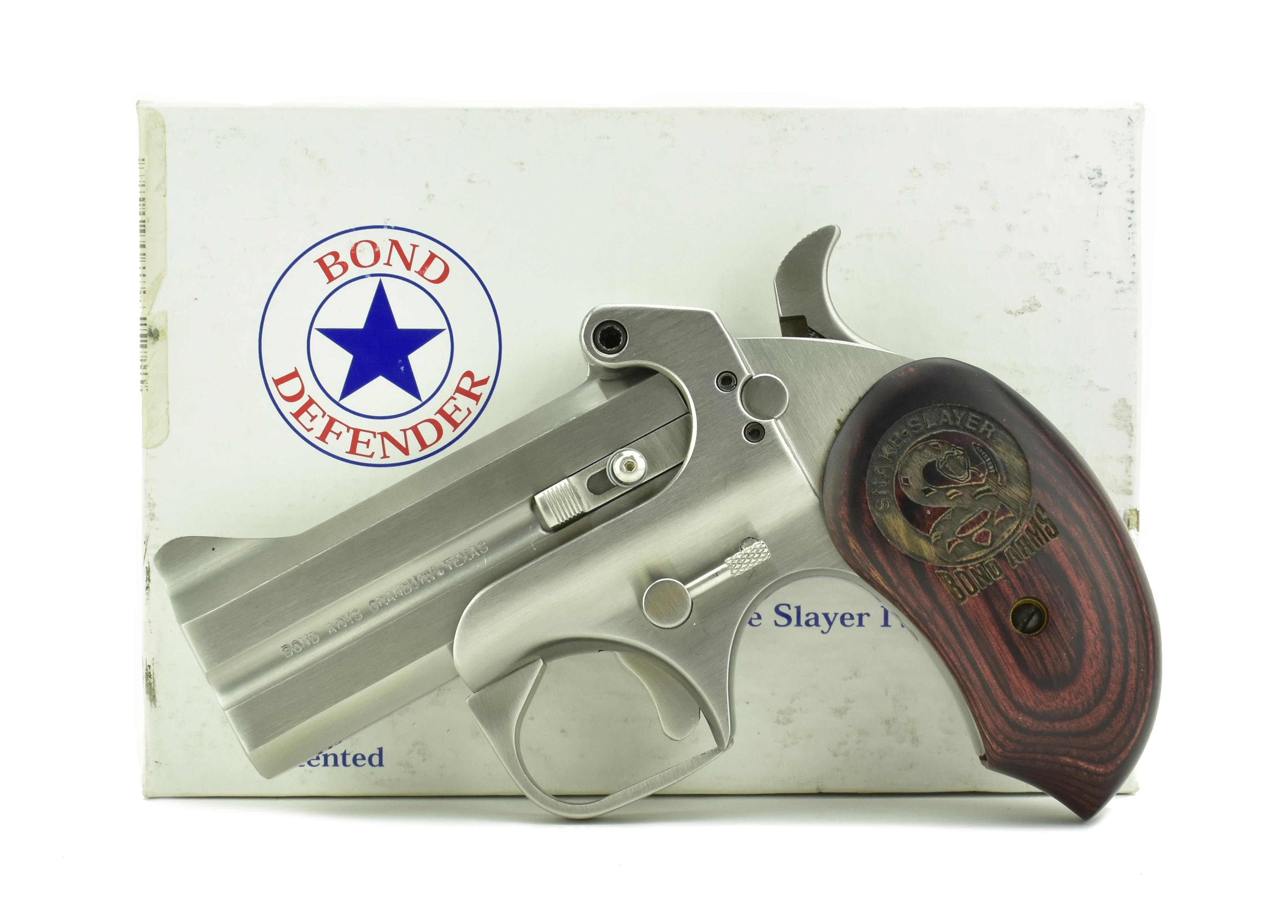 Bond Snake Slayer .45LC/410 Gauge caliber derringer. Stainless derringer with 3.75” barrel in excellent condition with box.
