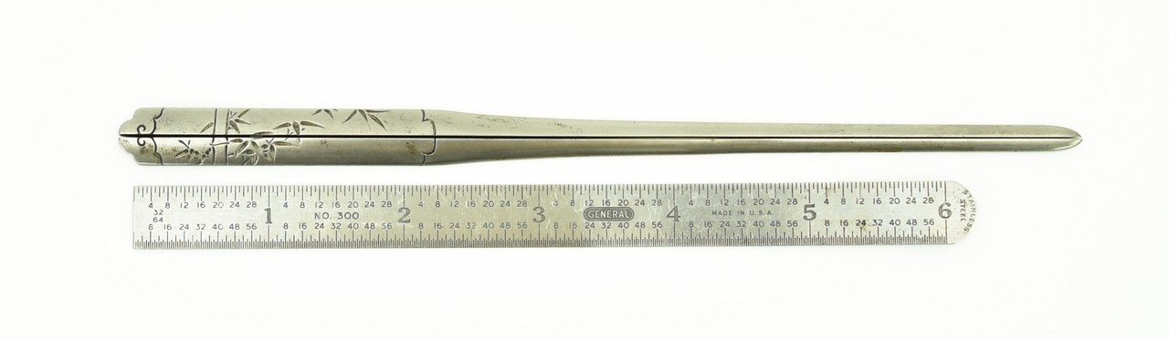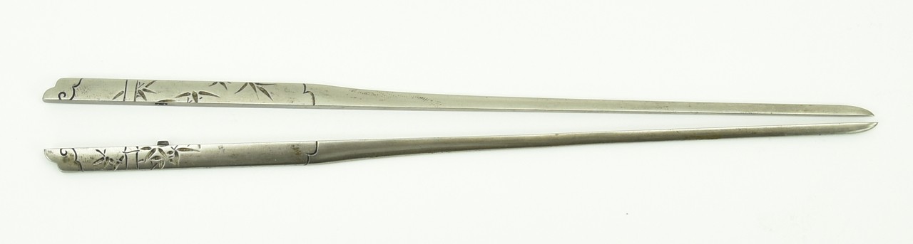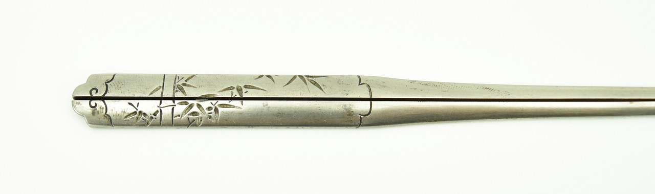 Waribashi. Bamboo stalks with fronds. Shibuichi. Signed Ichiju (1835-1903). Student of Goto Ichijo. Excellent condition.