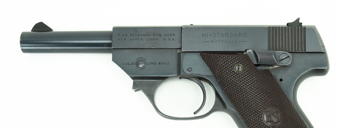Hi-Standard model GB .22 LR caliber pistol. .22 LR caliber with a 4.5” barrel. 97% of the original finish. Bore is excellent.