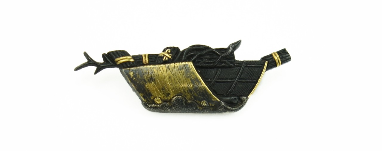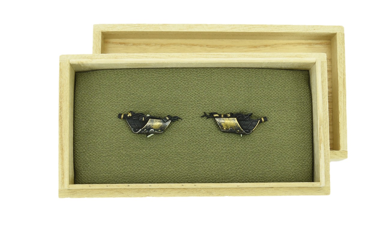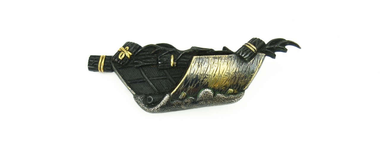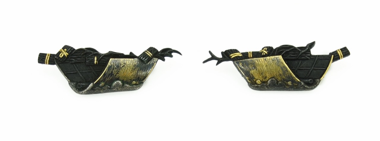 $345.00Kinko Fuchi Kashira. Shakudo Nanaro ground with unknown motif, unsigned and boxed.Add to cart -