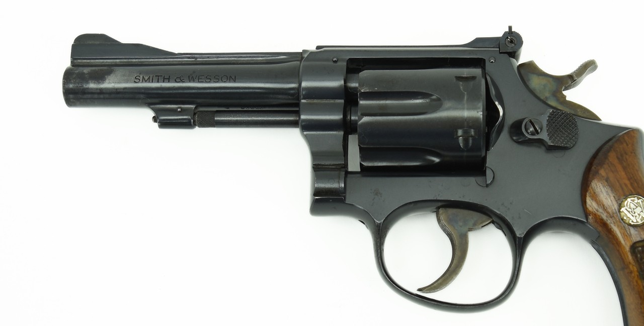 Smith & Wesson K22 Combat Masterpiece .22 LR caliber revolver. 5-screw pre-model 18 Combat Masterpiece. Shows some light pitting, bore and action are excellent.